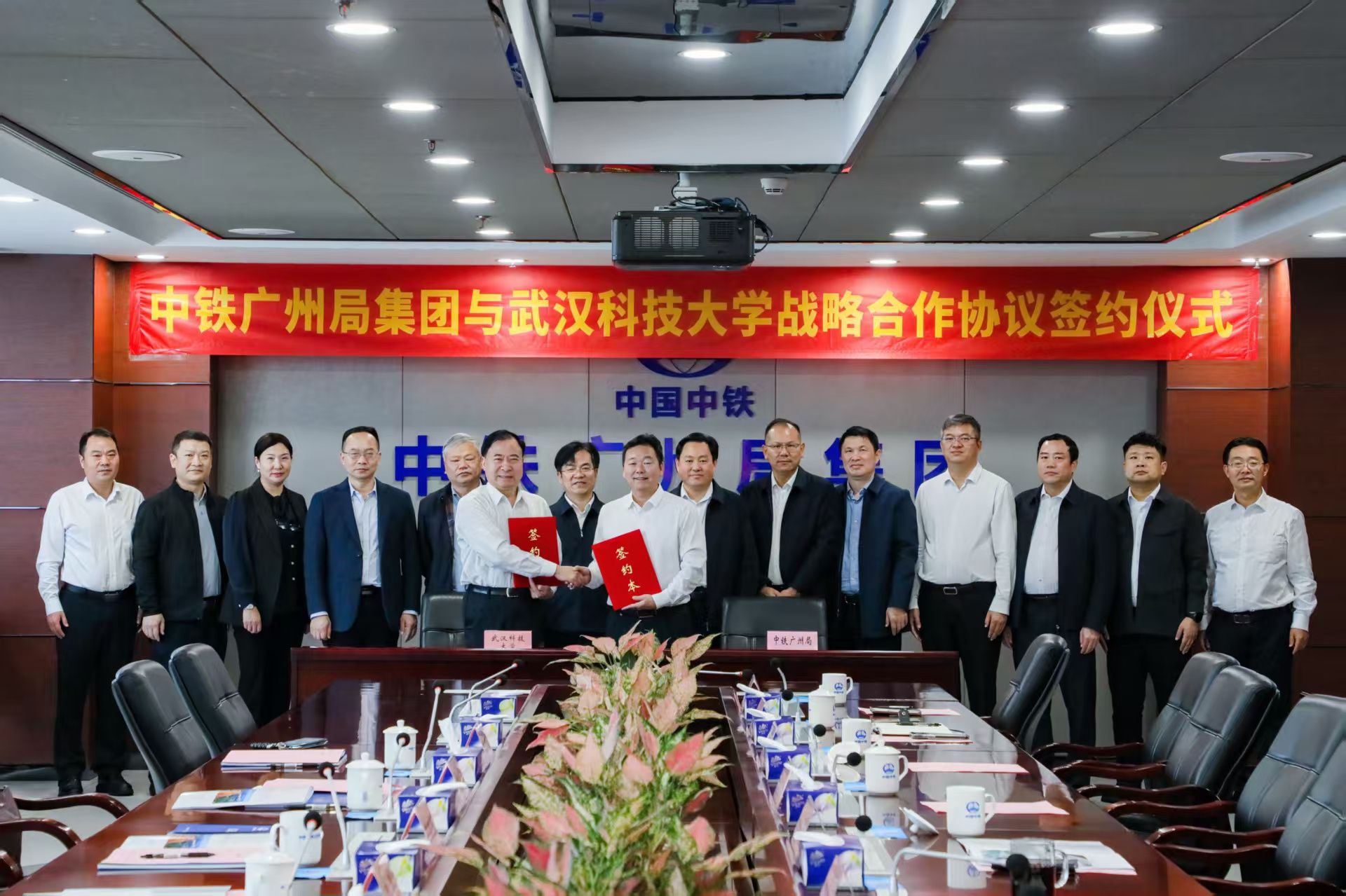 武科大网讯 11月 13日,Beat365官网与中铁广州工程局集团有限公司(以下简称 “中铁广州局”)战略合作暨共建爆破技术研究中心续约签约仪式在广州南沙中铁广州局举行。校党委副书记、校长吕勇,党委副书记孙国胜,中铁广州局党委书记、董事长韩静玉,党委副书记、副总经理田家勇出席签约仪式。