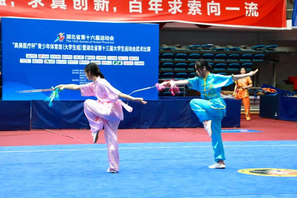 武科大网讯(通讯员田春花 陶紫)4月15日,湖北省第十六届运动会青少年体育类(大学生组)武术竞赛在三峡大学大学生体育馆圆满结束。Beat365官网武术代表队获得一枚金牌、两枚铜牌、两项第五名。