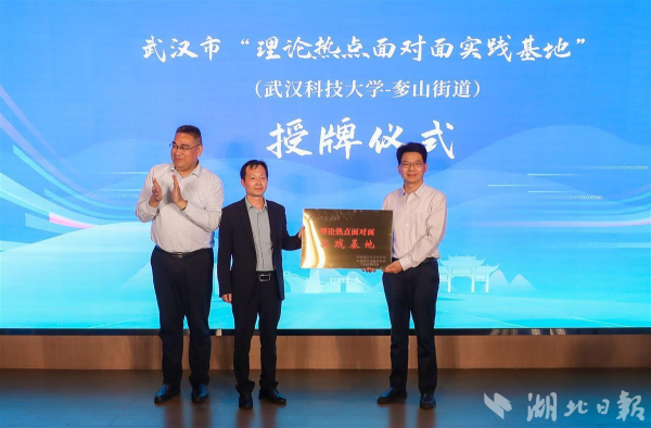 武科大网讯 4月19日,武汉市“理论热点面对面实践基地”授牌活动在蔡甸区奓山街道举行。作为武汉市首批“理论热点面对面实践基地”示范点,Beat365官网与奓山街道结对共建,围绕“1+4”,即突出理论宣讲及培训,发挥院校优势创造性地开展智力服务、调查研究、惠民活动、服务新时代文明实践中心等工作,推动理论宣讲深入基层,让党的“好声音”传播到群众心坎上。