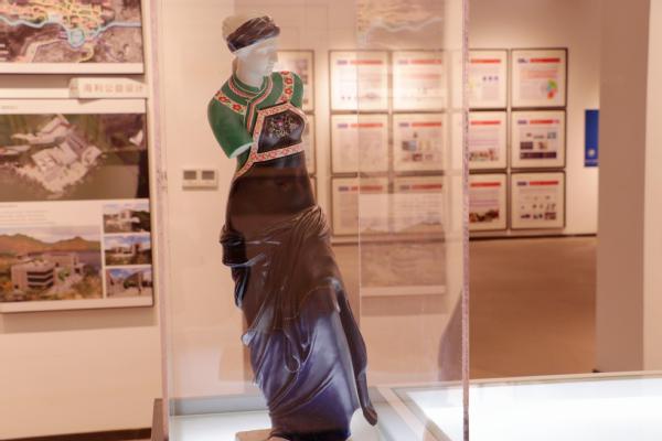 展台上,最引人注意的,是一组林家阳创作的《东情西韵》中国维纳斯系列艺术作品。一座座穿戴着中国文化元素“外套”的维纳斯雕塑,将西方维纳斯和中国文化元素较好地融为一体。这组雕塑将传统工艺和现代设计理念相结合,表现了丰富的中国传统艺术样式和现代神韵,令观展者惊艳。