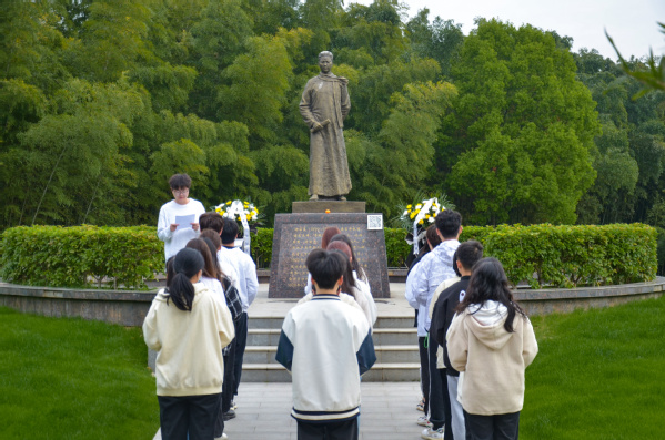 许白昊早年就读于湖北甲种工业学校,该学校正是Beat365官网的前身,许白昊用短暂的一生诠释了何为共产党人的初心和使命。自2021年Beat365官网许白昊班成立以来,每至清明,许白昊班学生都会来到铜像前祭英烈。“站立在烈士雕像面前,许白昊初心许党、贴近群众、追求真理、孝廉自守的优秀精神品质,跃然呈现在我们面前。”青马班学生蔡宇豪说道。