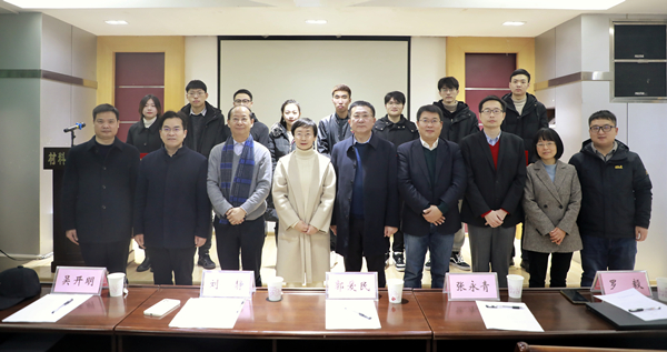 郭爱民为获奖研究生颁奖并与获奖学生合影留念。