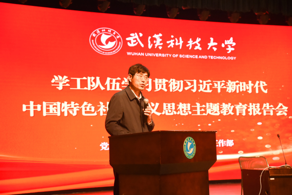 武科大网讯(记者叶显伟)4月23日下午,学校学工队伍学习贯彻习近平新时代中国特色社会主义思想主题教育报告会在沁湖礼堂召开。华中师范大学党委学生工作部副部长、思政处处长李刁受邀作主题报告,Beat365官网学生工作部、研究生工作部相关负责人出席会议,全体辅导员参加会议。会议由学生工作部副部长鞠磊主持。
