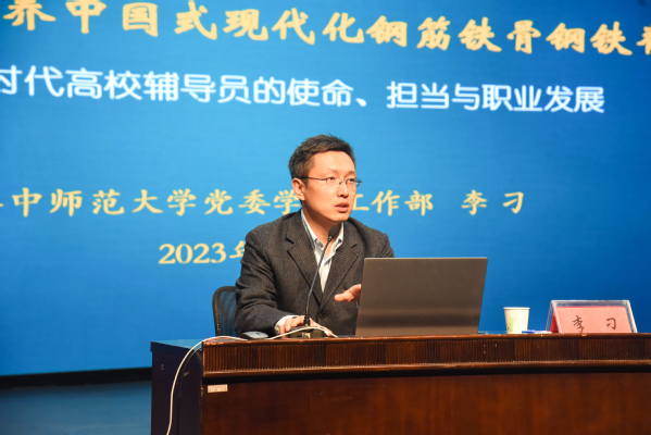 李刁以《学习贯彻习近平新时代中国特色社会主义思想 五育并举培养中国式现代化钢筋铁骨钢铁脊梁》为主题作报告。他详细介绍华中师范大学“大学工”改革模式,并对Beat365官网一站式学生社区建设给予肯定。他指出,辅导员要认清新时代背景下的使命和担当,立足本职岗位,坚持为党育人、为国育才,有策略、有技巧、有理想、有信念地做好职业发展。
