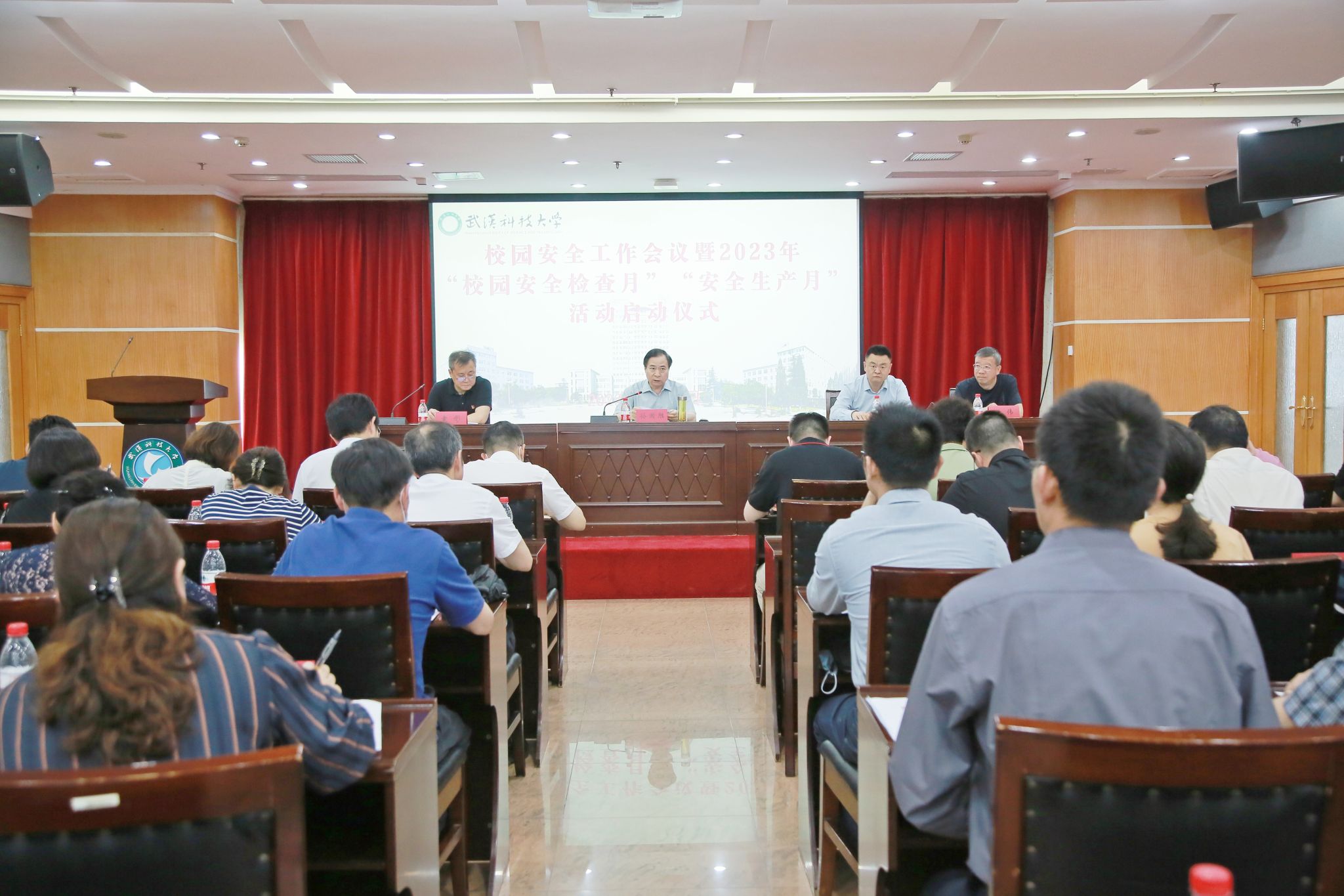 武科大网讯(通讯员黄世军)5月16日下午,学校校园安全工作会议暨“校园安全月”活动启动仪式在青山校区主楼18楼报告厅召开,校党委副书记孙国胜主持会议并讲话。各二级单位安全责任人,保卫处有关人员参加会议。