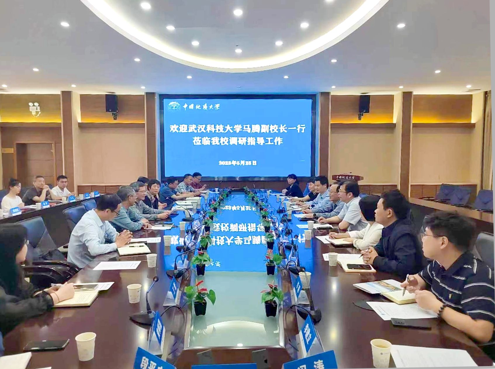 武科大网讯 5月25日,副校长马腾一行12人前往中国地质大学(武汉)开展“调研学习”主题教育活动,中国地质大学副校长李建威接待。