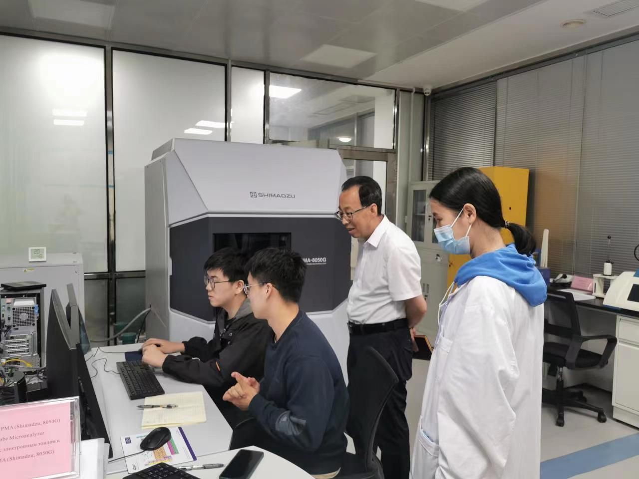 在振动样品磁强计实验室,马腾听到王飞舟介绍到2022年中心圆满完成了中国地质大学委托的嫦娥五号采集的月球土壤磁性检测任务后非常高兴,他鼓励教师们继续不断学习研发,提升能力水平,扩大设备对外影响力。