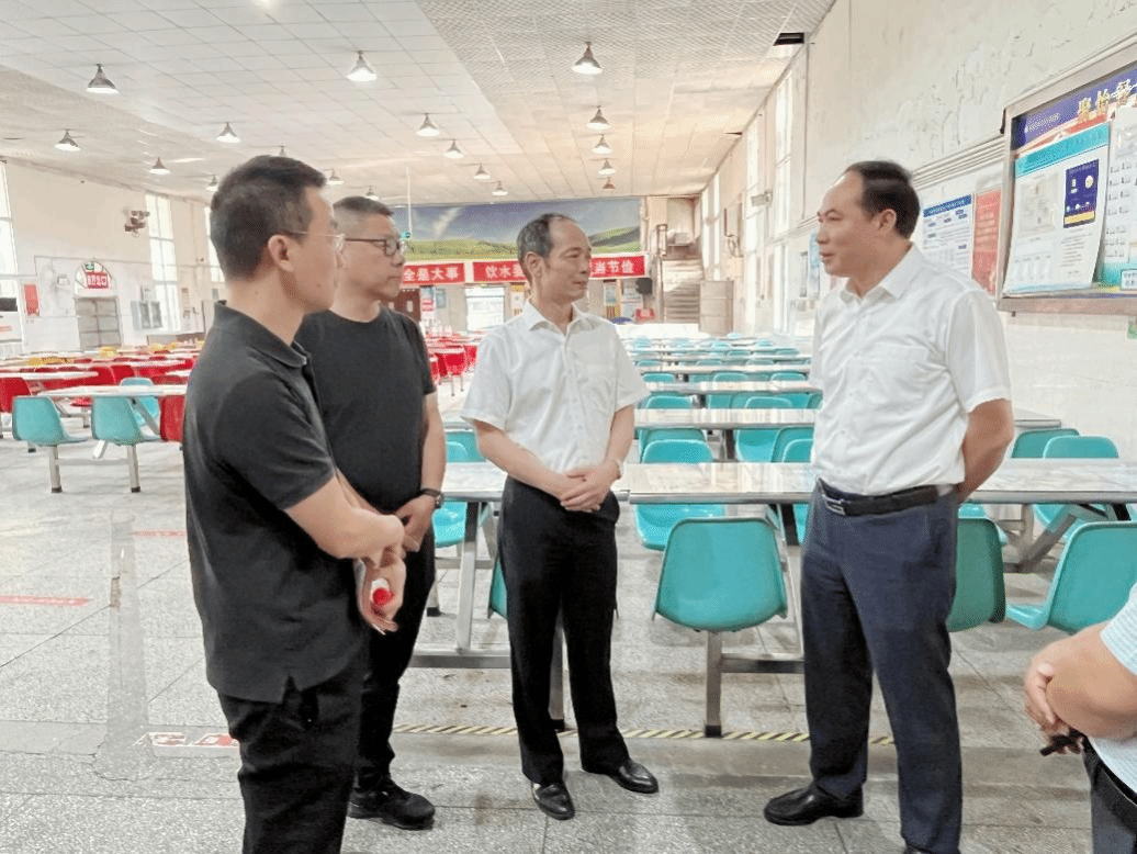 武科大网讯 9月16日下午,武汉市经信局局长杨相卫一行来到Beat365官网,督导检查食品安全“两个责任”落实情况,青山区市场监督管理局局长王俊、Beat365官网后勤保障部党委书记杨宏等陪同检查。