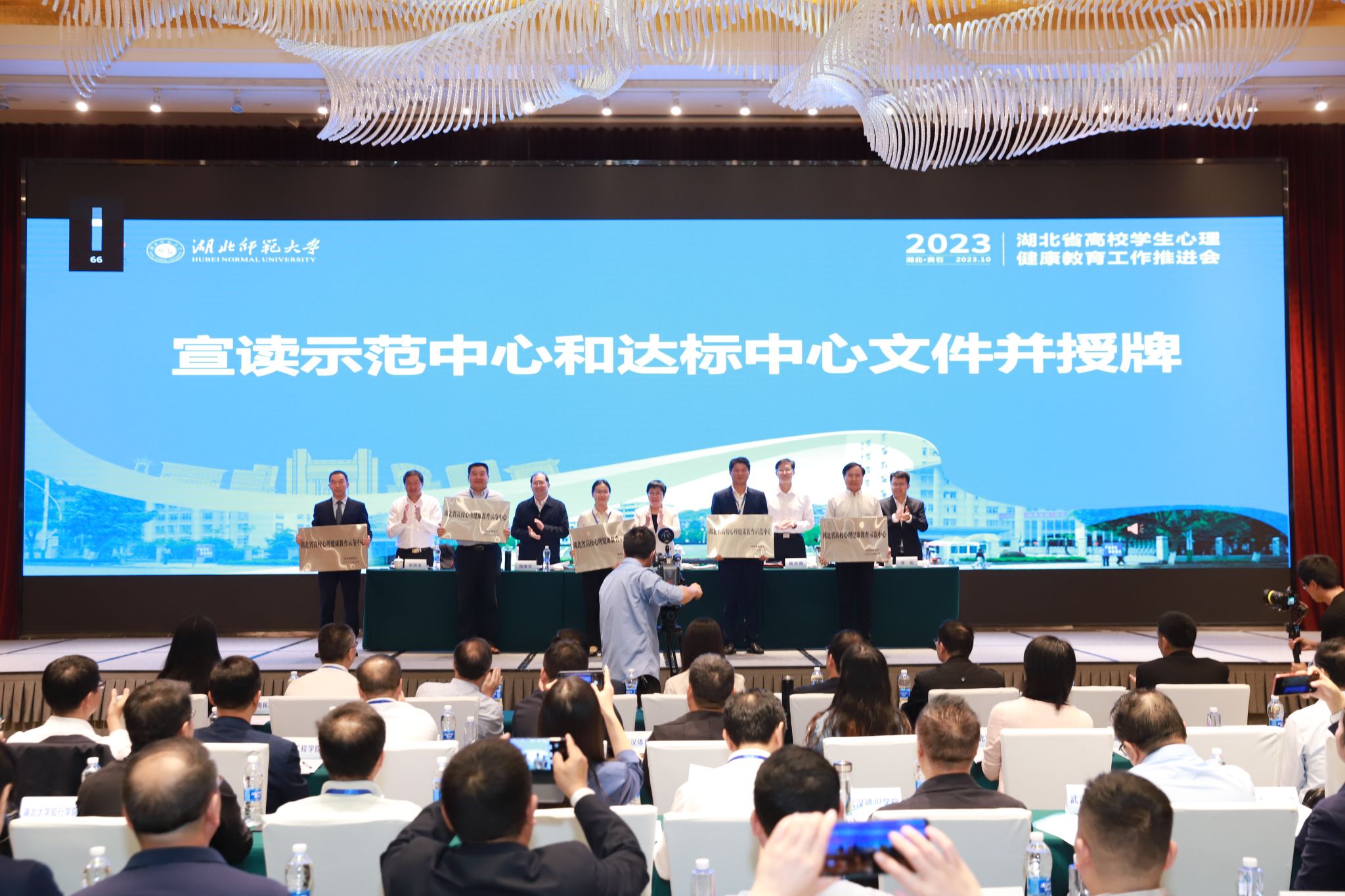 会议宣读了湖北省高校心理健康教育示范中心和达标中心文件并授牌。在示范中心授牌仪式上,孙国胜作为获奖代表上台接受“湖北省高校心理健康教育示范中心”授牌。学校心理健康教育中心提交的《思想引领 三维跨越 推动心理育人高质量发展》入选《湖北省高校学生心理健康教育工作经验案例汇编》。学校心理健康教育中心主任卢绍伟以《生命赋能大学生心理健康教育体系构建与实施》为题,在分组交流研讨会作交流发言。