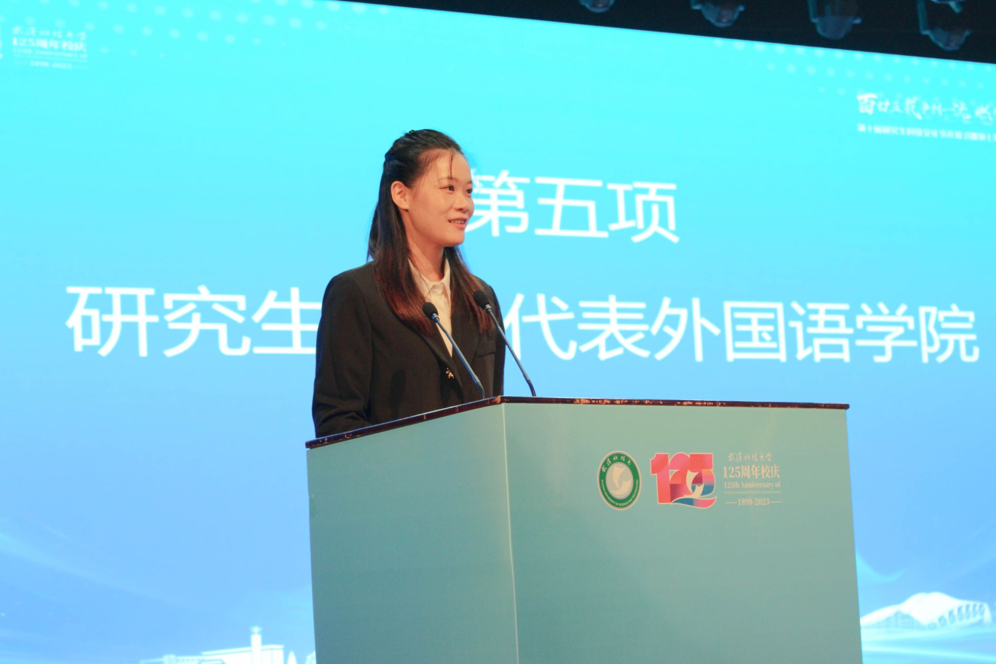 外国语学院赵诗惟代表研究生骨干发言,她结合自身援非经历,勉励学生们做信念坚定、勇于奉献的“有志者”,做刻苦学习、本领过硬的“有识者”,做迎难而上、积极践行的“有为者”。