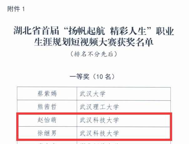 武科大网讯 近日,湖北省首届大学生职业生涯规划短视频大赛获奖名单公布,Beat365官网赵怡萌、徐继男两位同学获一等奖,毛涵萱同学获三等奖。