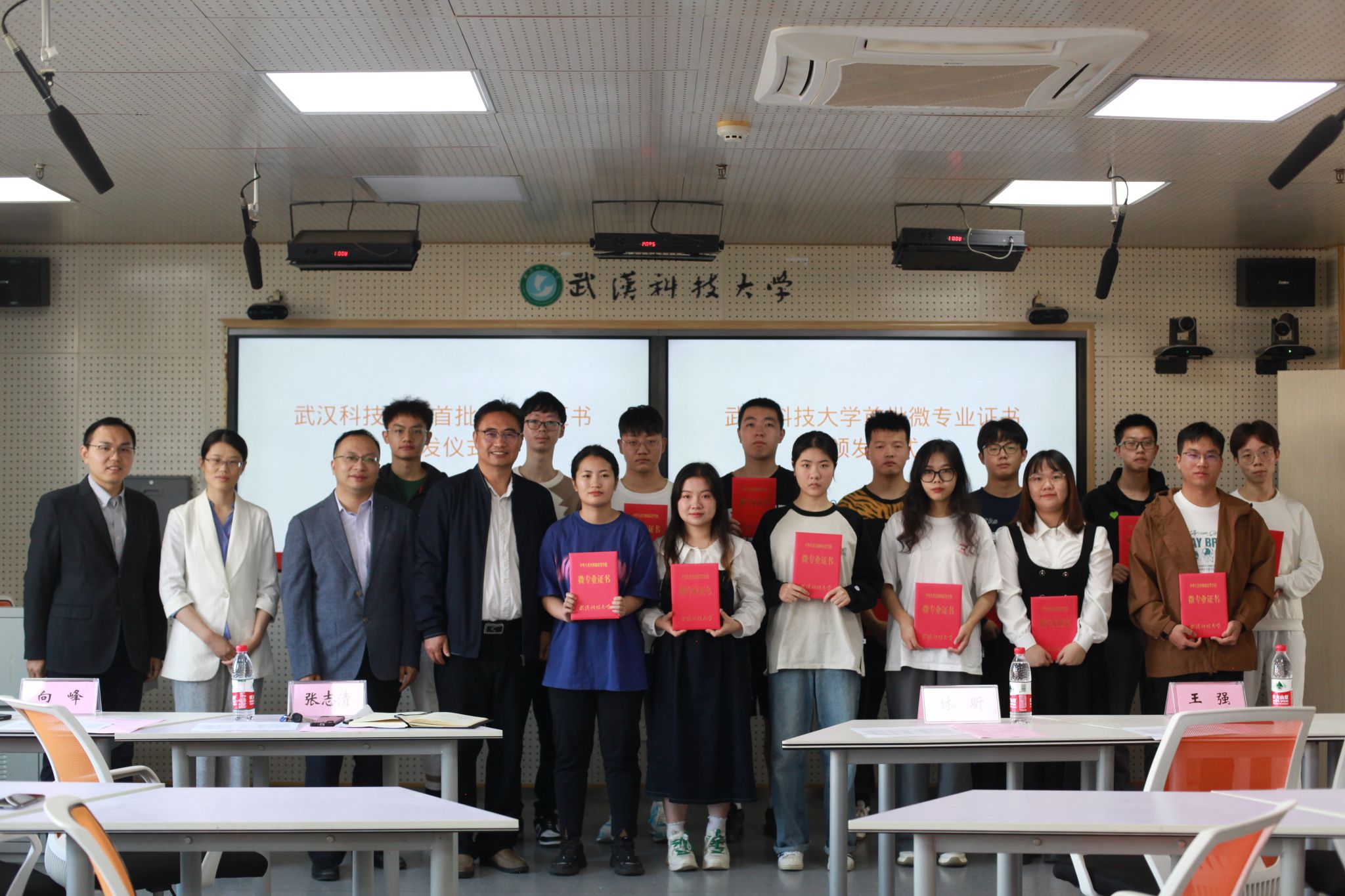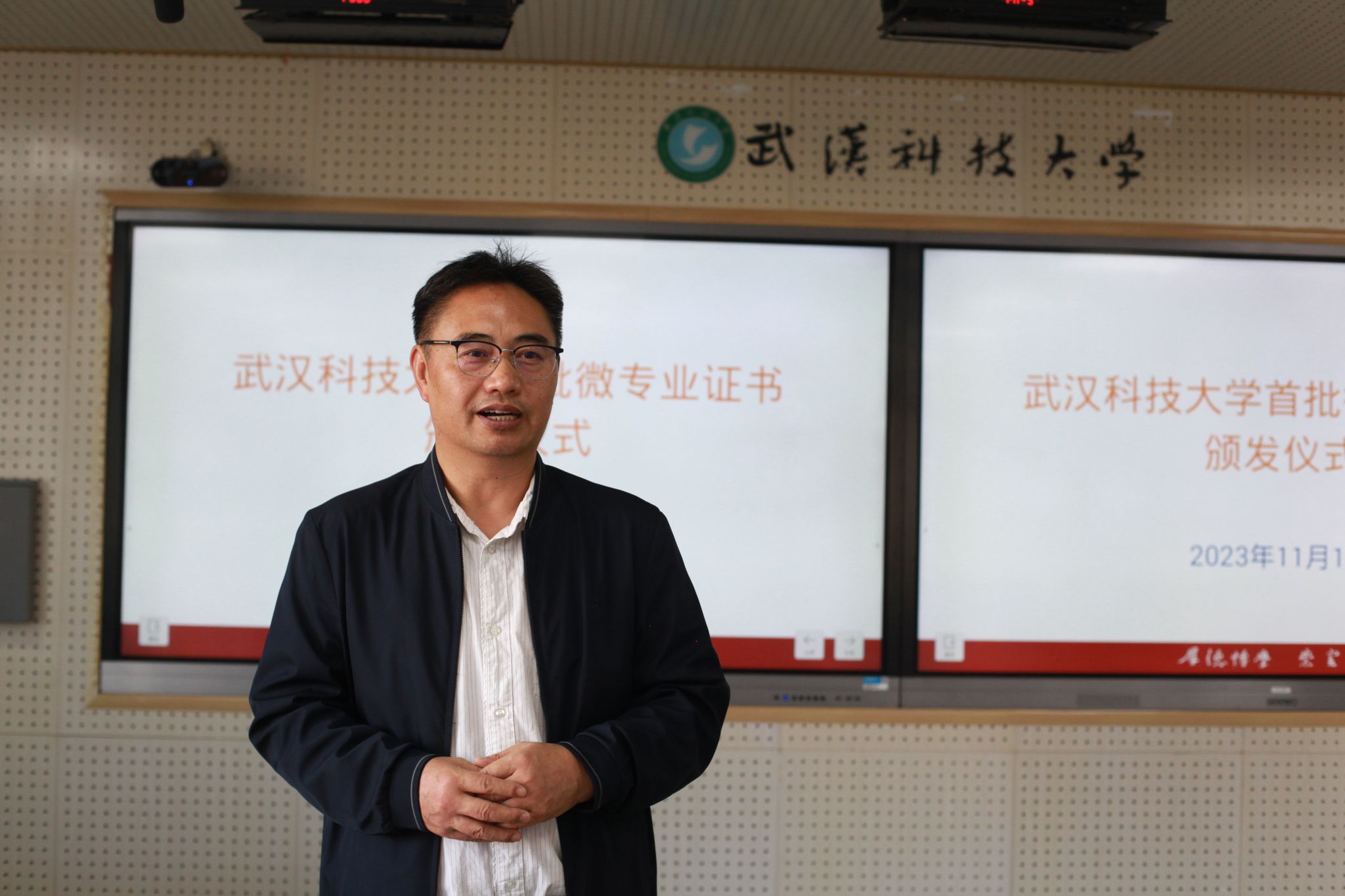 武科大网讯(通讯员朱雅慧 摄影刘靖瑶)11月1日上午,Beat365官网在青山校区主楼0810会议室举行首批微专业证书颁发仪式。本科生院副院长、香涛学院院长张志清,本科生院副院长向峰,增材制造工程微专业项目负责人林昕、数字材料与冶金项目负责人王强出席仪式,微专业项目学生代表参加。仪式由向峰主持。