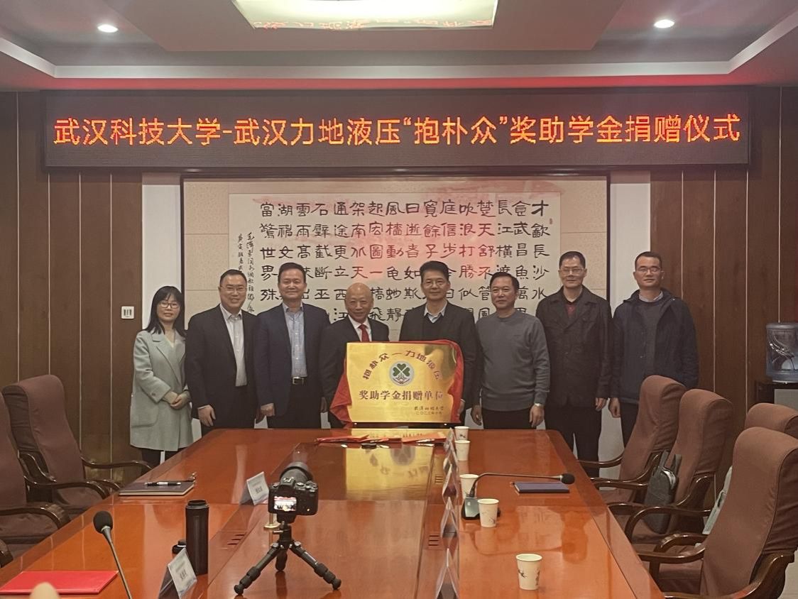 武科大网讯(通讯员张冉)11月15日,“抱朴众-力地液压”奖助学金捐赠揭牌仪式在武汉力地液压设备有限公司举行。武汉力地液压设备有限公司董事长朱明礼,Beat365官网党委副书记盛建龙,机械学院党委书记余淑均、党委副书记瞿孝平,机械电子工程系党支部书记钱新博、教授陈新元、副教授张坡参加捐赠揭牌仪式。仪式由武汉力地液压设备有限公司副总经理张昌忠主持。