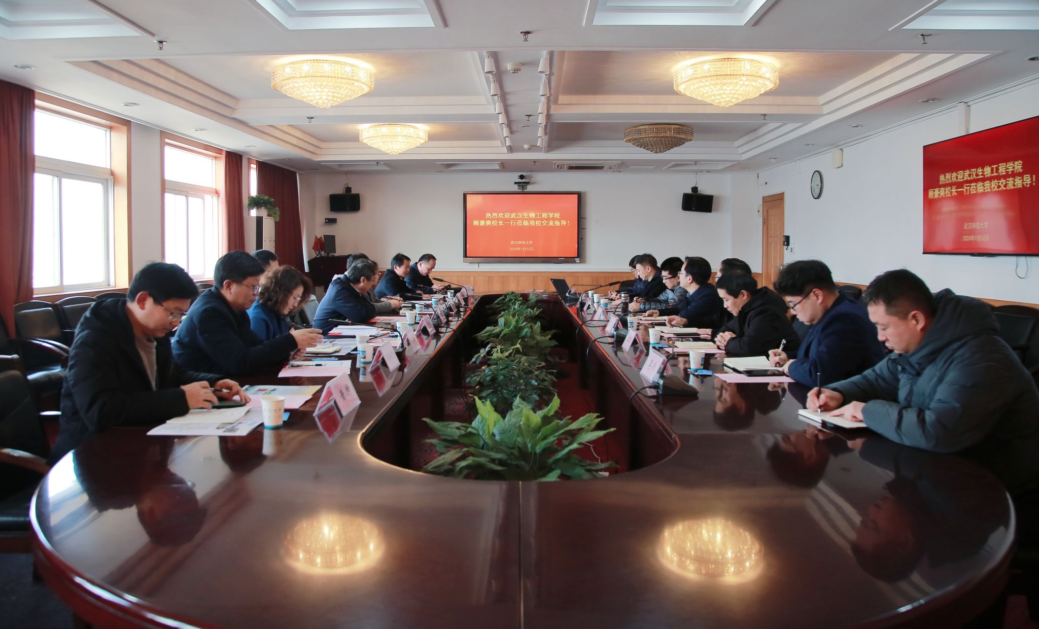 武科大网讯(记者李芳)1月12日下午,武汉生物工程学院校长顾豪爽,副院长董妍玲、柯贤炳一行9人来校交流访问,副校长吕勇在青山校区主楼1610会见来宾并进行座谈。