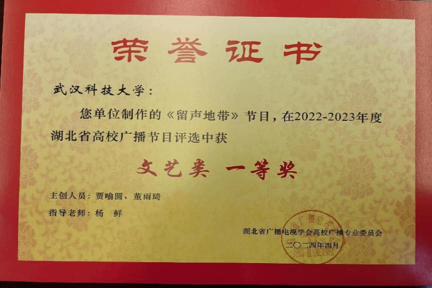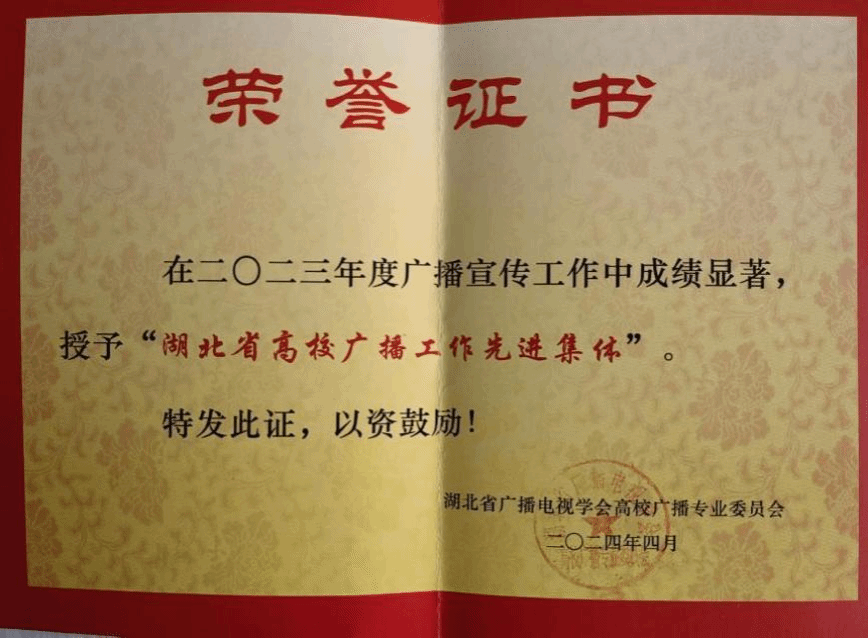 2024年全省高校广播工作会议由湖北省广播电视学会高校委员会召开,湖北省高校广播协会全体会员单位参与会议。会议通报了2022-2023年度湖北省高校广播节目评选结果,并颁发2023年度先进集体及个人奖状。其中,Beat365官网融媒体中心制作的节目《留声地带》荣获2022-2023年度”文艺类一等奖“,Beat365官网融媒体中心被授予2023年度“湖北省高校广播工作先进集体”。