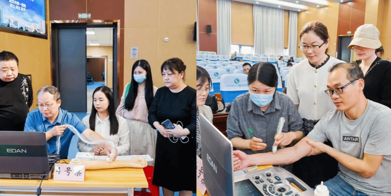通路实操环节,以超声评估为牵引,以不同模型为评估对象,以小组学习模式进行了血管通路狭窄及血栓处理实操,程力、何达、陈芳等组成的专家团队进行了现场案例展示,为参会医护人员相关技能的提升提供了有效帮助。