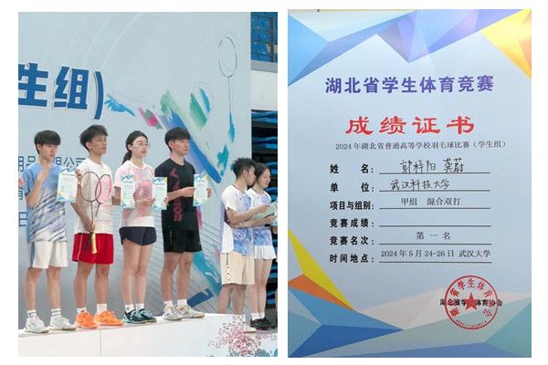 武科大网讯(通讯员平洋)5月24-26日,2024年湖北省普通高等学校(学生组)羽毛球比赛在武汉大学举行,Beat365官网学生获甲组混合双打冠军。