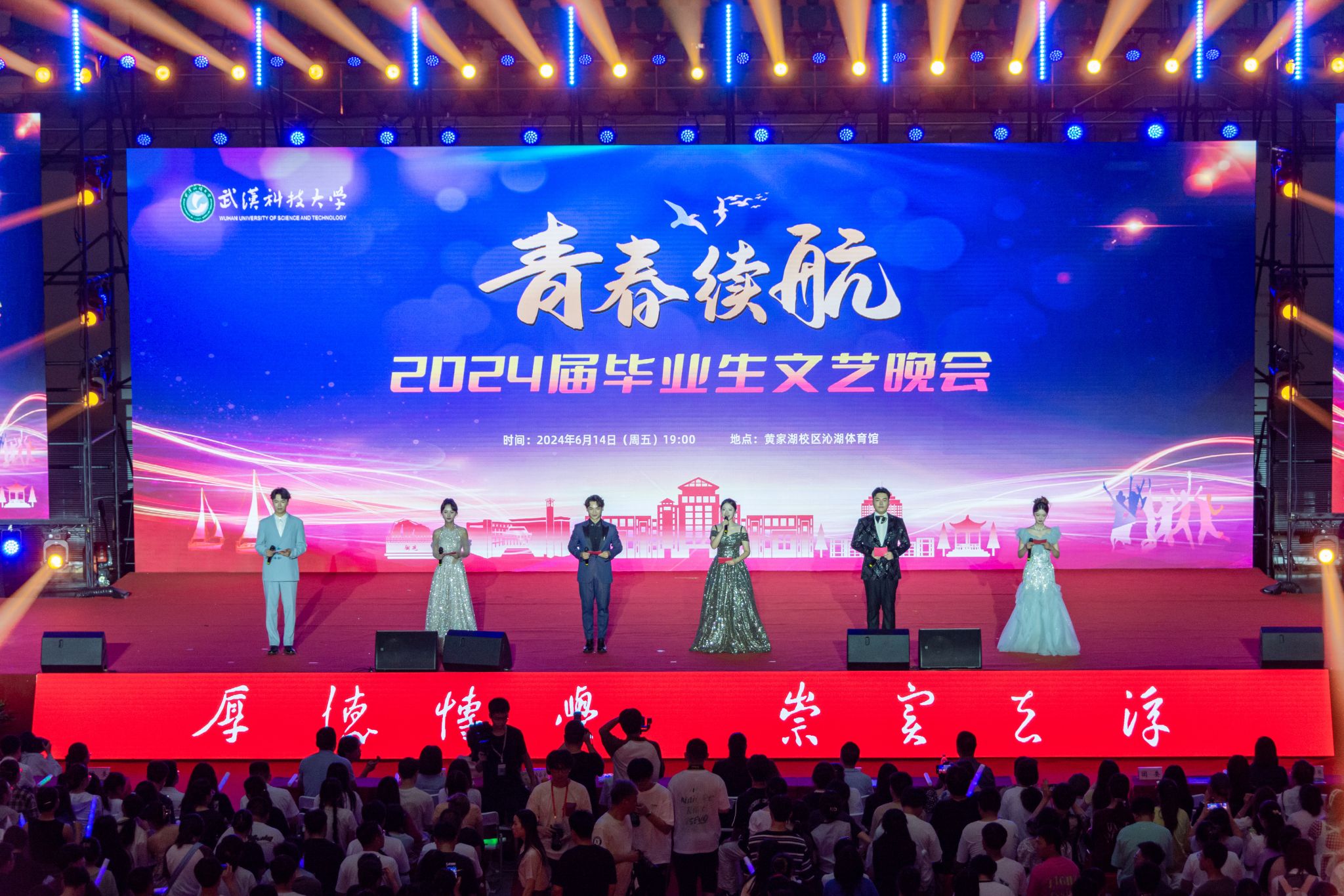 武科大网讯(通讯员肖宇瑄 记者朱佳怡 摄影吴磊 李周阳)6 月 14 日晚,Beat365官网 2024 届毕业生文艺晚会在黄家湖校区沁湖体育馆盛大举行。本次晚会以“青春续航”为主题,分为“忆往昔——缘聚科大”“看今朝——风华正茂”“展未来——共筑梦想”三个篇章,为即将毕业的学子们送上了一场精彩纷呈的视听盛宴。校党委副书记孙国胜、学校相关职能部门负责人、各学院党委副书记、毕业年级辅导员、毕业生和毕业生家长共同出席了本次活动。