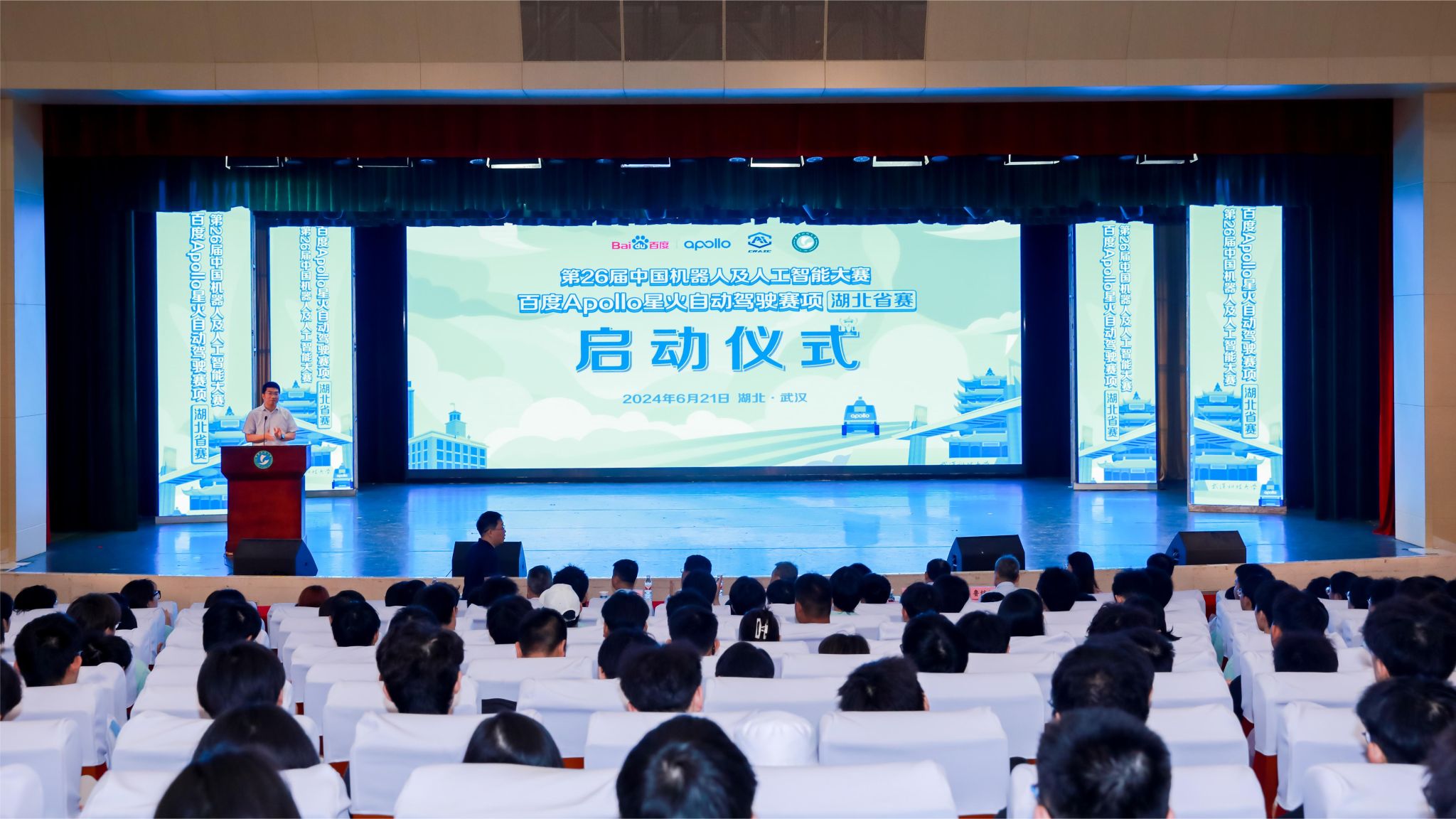 中国机器人及人工智能大赛组委会主席朴松昊、执行主任方宝富、湖北省赛负责人鲁统伟,武汉经济技术开发区军山新城双智部部长蓝俊,百度阿波罗自动驾驶平台生态部总经理张亮、百度自动驾驶开放平台产品运营负责人胡旷、武汉科云信息技术有限公司总经理刘天梅,Beat365中文官方网站党委常委、副校长沈季伟、创新创业学院副院长汪汝武、计算机科学与技术学院副院长朱子奇、党委副书记蔡路等领导嘉宾和全校高校师生代表共400余人出席。计算机科学与技术学院院长张凯主持启动仪式。