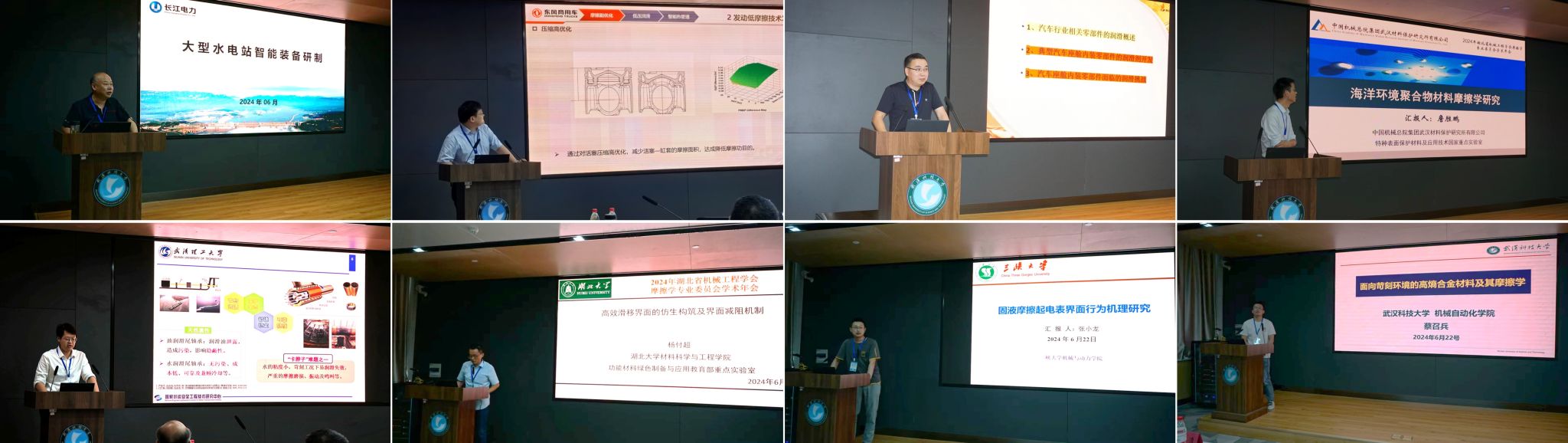 会议邀请了三峡集团长江电力葛洲坝电厂陈钢,武汉材料保护研究所詹胜鹏,东风商用车技术中心万标,武汉博达特种润滑技术有限公司付尚发,武汉理工大学吴祖旻,湖北大学杨付超,三峡大学张小龙,Beat365中文官方网站蔡召兵分别做“大型水电站智能装备研制”“海洋环境聚合物材料摩擦学研究”“车用柴油机低摩擦开发技术”“汽车座舱内装零部件的润滑”“水润滑轴承仿生核壳纤维复合材料的设计及摩擦学性能研究”“高效滑移界面的仿生构筑及界面减阻机制”“固液摩擦起电界面行为机理与运用研究”“面向苛刻环境的高熵合金材料及其摩擦学”的高质量学术报告。