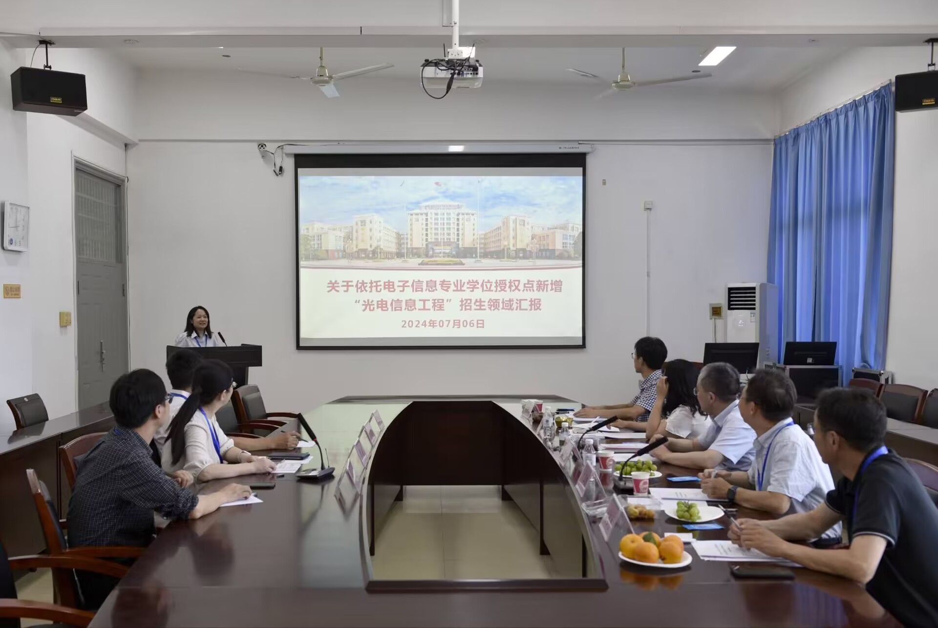 专家组听取应用物理系成林教授对物理学学位点建设情况的汇报。