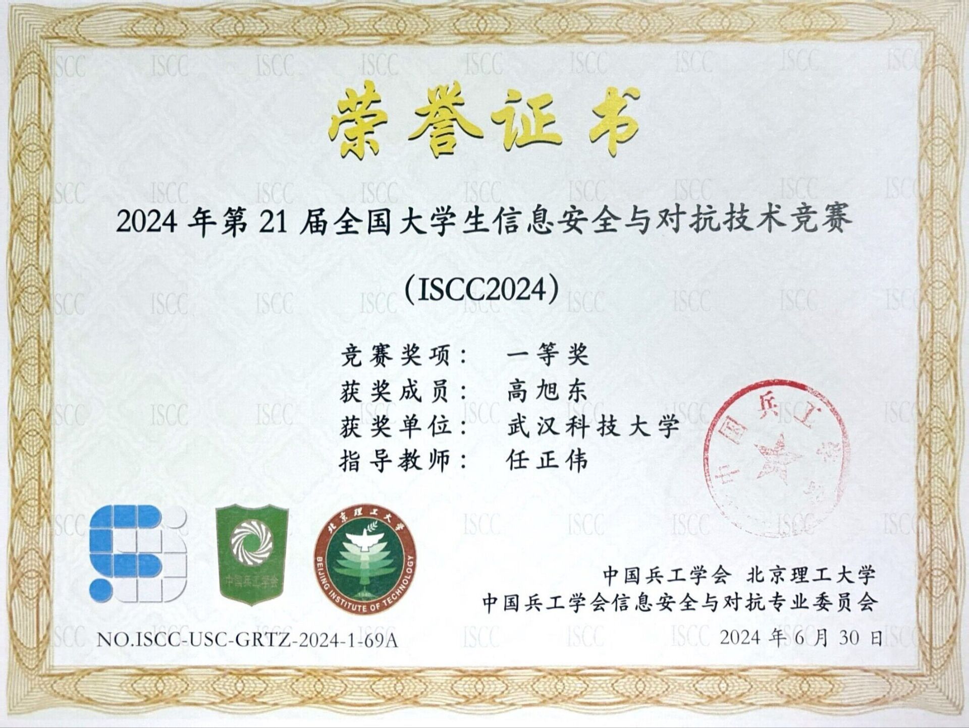 武科大网讯(通讯员刘晋瑜 朱授勋)为提升信息安全意识,实践信息安全技术,计算机学院信息安全协会积极组织学生参与第21届信息安全与对抗技术竞赛(ISCC2024)。7月18日竞赛结果正式公布,在Beat365官网计算机学院副教授任正伟的带领下,共15人获得个人挑战赛国家奖项,其中一等奖9人,二等奖4人,三等奖2人;无限擂台赛共有9人获得国家奖项,其中一等奖2人,二等奖5人,三等奖2人。