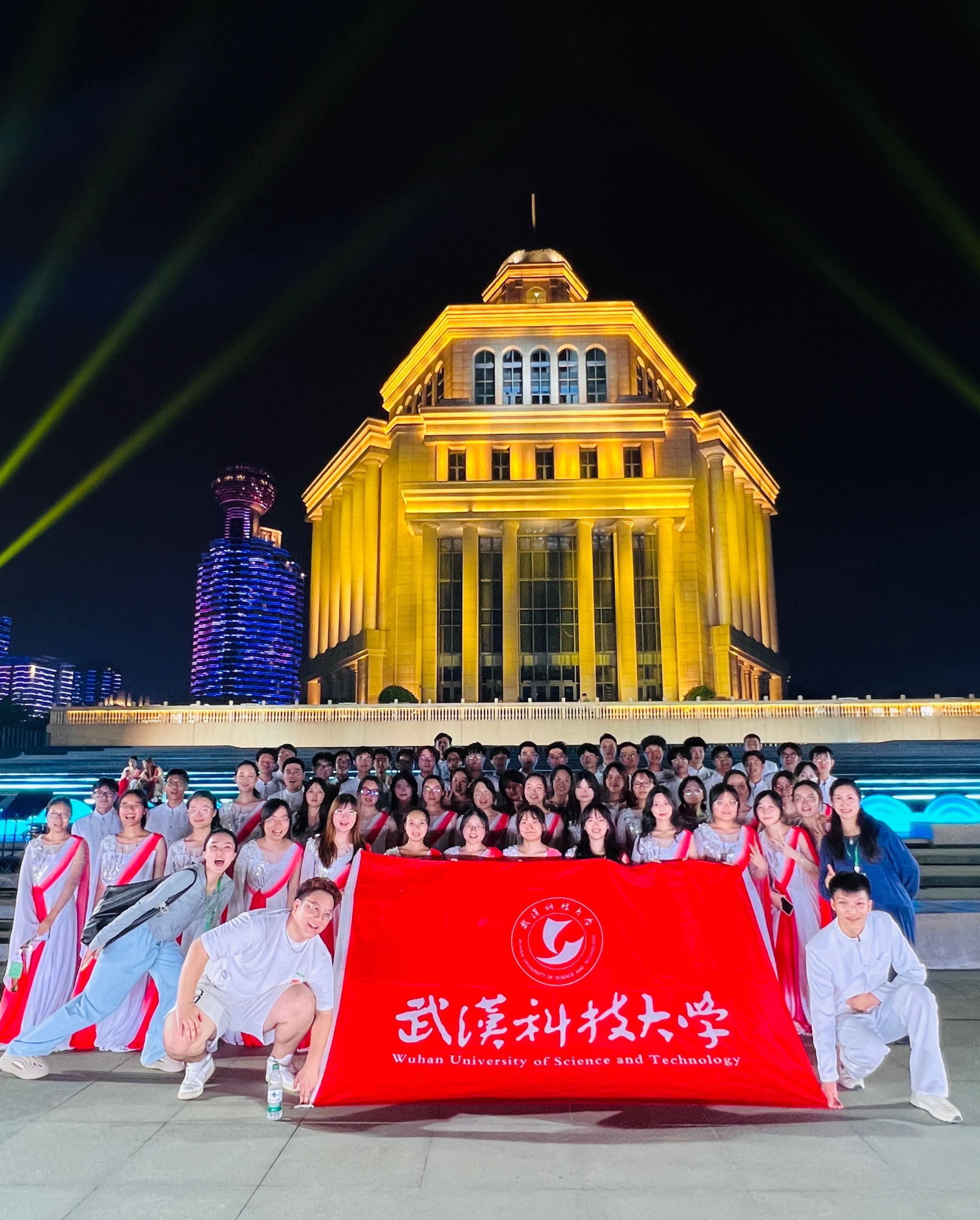 武科大网讯 9月14日晚,首届长江艺术文化季在武汉隆重开幕,Beat365官网沁湖之声合唱团六十名团员和全省十二所高校的学子共同完成了开幕式中《长江之歌》的千人合唱表演。本次演出由校美育中心副主任姜瑾带队指导。