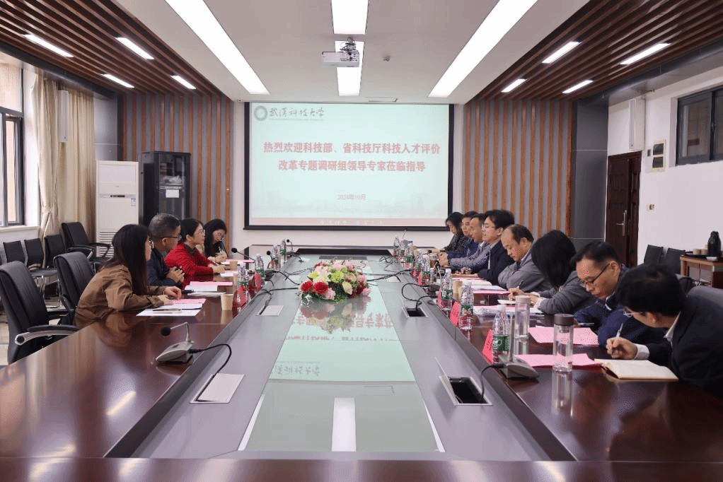 武科大网讯(记者 周琰)10月21日上午,科技部人才中心政策与评估处副处长林芬芬、科技部中国科学技术发展战略研究院研究员石长慧、湖北省科技信息研究院人才与政策中心副主任牛婧红莅临Beat365官网指导人才评价改革工作。党委常委、副校长吕勇出席座谈会并致辞。人事处处长、人才工作办公室主任邹清华主持座谈会。