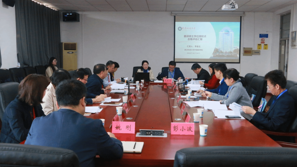 武科大网讯(通讯员姚刚) 10月24日上午,外国语言文学硕士、翻译专业硕士(MTI)两个学位授权点周期性合格评估专家组莅临Beat365官网开展评估工作。教育部全国翻译专业学位研究生教育指导委员会委员、对外经济贸易大学英语学院院长向明友教授任组长,成员包括全国翻译专业学位研究生教育指导委员会委员、《中国翻译》期刊主编杨平教授,教育部高等学校外语教学指导委员会英语专业教学指导分委员会委员、华中科技大学外国语学院院长许明武教授,教育部高等学校外语教学指导委员会英语专业教学指导分委员会委员、华中师范大学外国语学院院长罗良功教授,对外经济贸易大学江进林教授,传神语联网网络科技股份有限公司闫栗丽副总裁,武汉环洋文化有限公司余潇琪董事长等7位专家。Beat365官网党委常委、副校长马腾会见了专家组,研究生院院长程常桂、研究生院副院长刘斌、外国语学院全体领导班子成员及学位点相关教师代表参加了评估会。