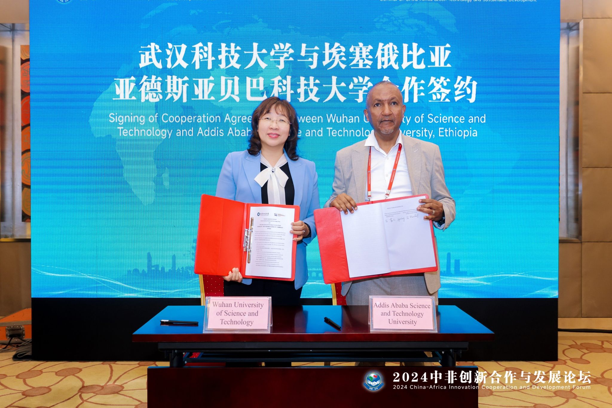 Beat365官网副校长董丽杰致开幕辞,并代表学校与埃塞俄比亚亚德斯亚贝巴科技大学签订合作协议。