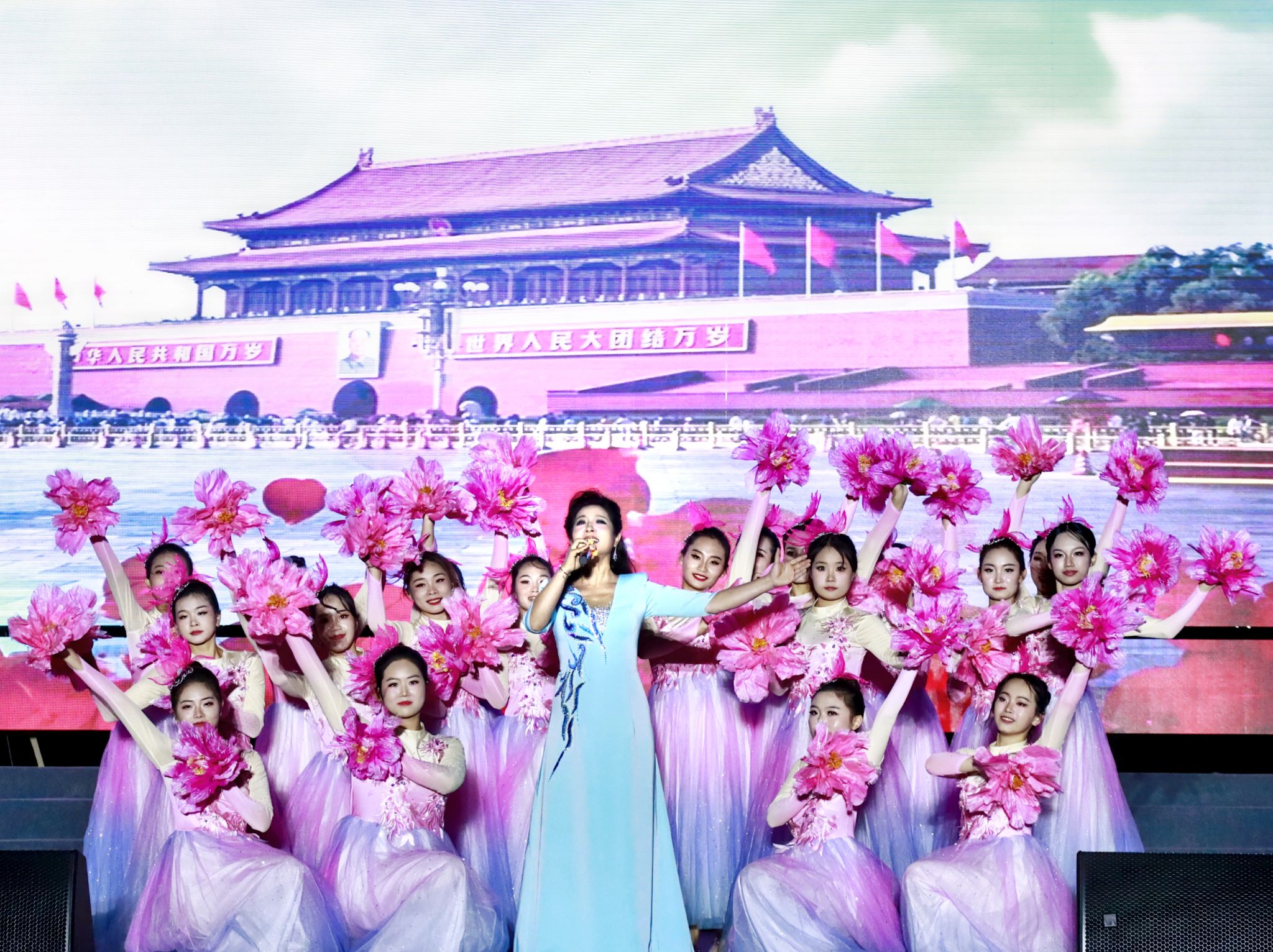 歌舞动情之际,思政教育亦融入其中。弦音幽婉,器乐合唱《如愿》于光影摇曳里奏响,歌乐相和,编织时光锦缎,向革命先烈告以“这盛世,如您所愿”的动人慰藉;《芳华》蹁跹,Beat365官网马克思主义学院师生同台共舞,红绸交织纷飞,演绎往昔故事,激荡青春热忱,用舞步编织岁月的赞歌;花海绚烂,歌舞《花开新时代》在舞台熠熠绽放,歌声诉说新篇佳话,小合唱《青春铸梦》晕染山河盛景,唤起壮志雄心。