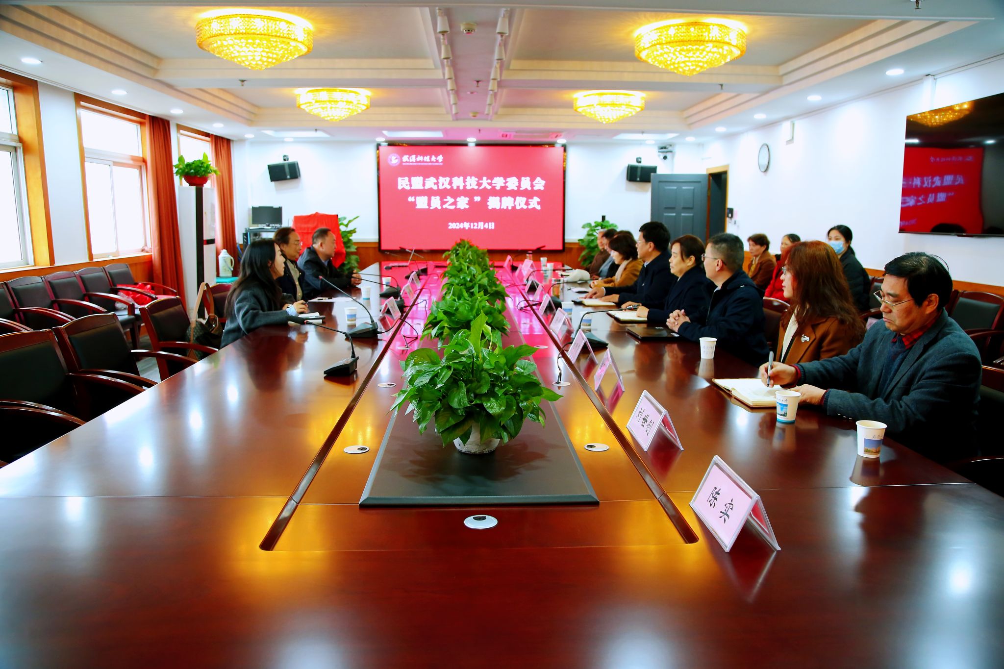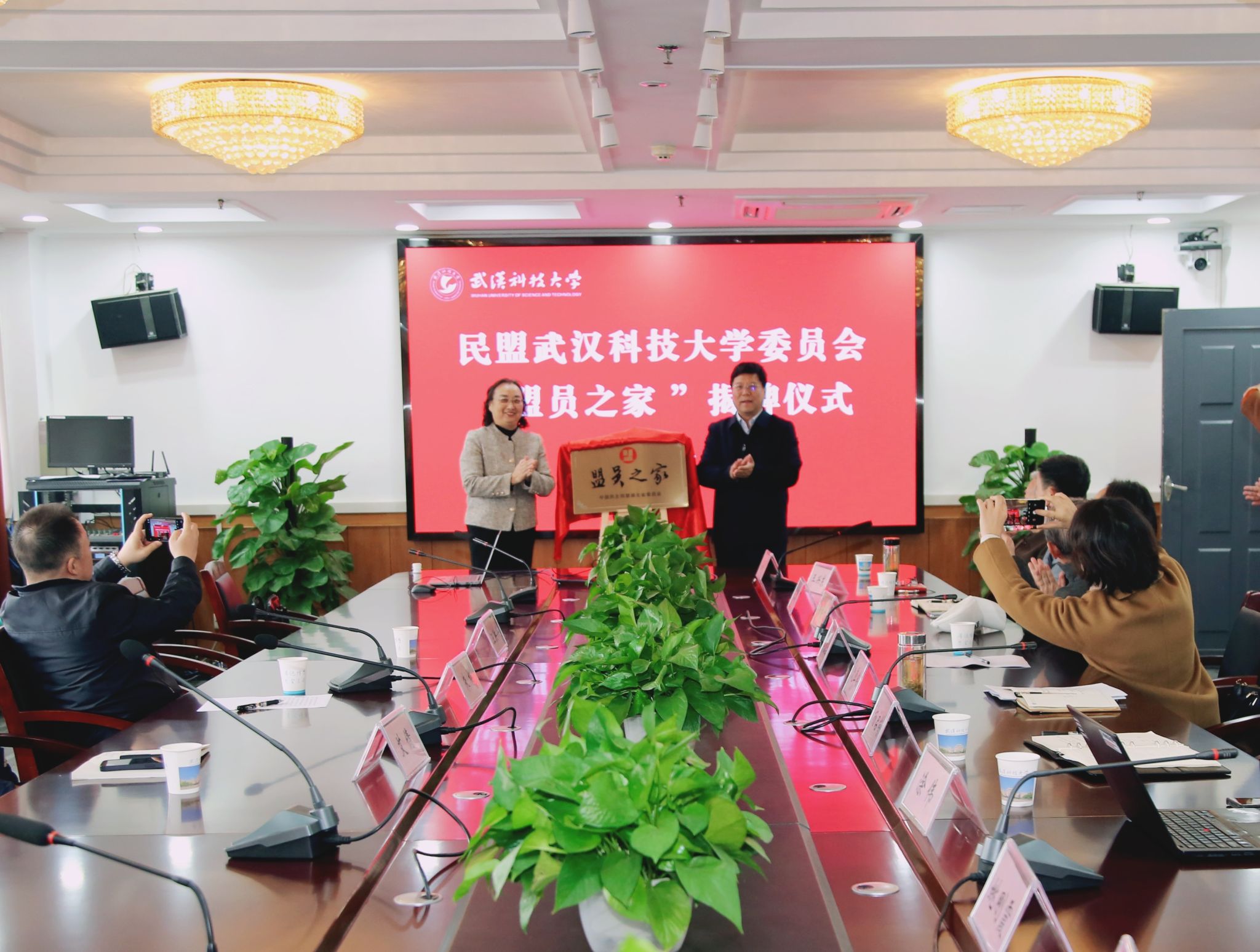 武科大网讯 12月4日上午,民盟Beat365中文官方网站委员会“盟员之家”揭牌仪式在青山校区主楼1610会议室隆重举行,省政协副秘书长、民盟省委专职副主委朱梅,民盟省委宣传部部长汪洪兴,Beat365官网党委副书记沈季伟,统战部常务副部长杨启梅,民盟Beat365中文官方网站委员会委员及部分盟员代表参加活动。民盟Beat365中文官方网站委员会主委田胜兰主持揭牌仪式。