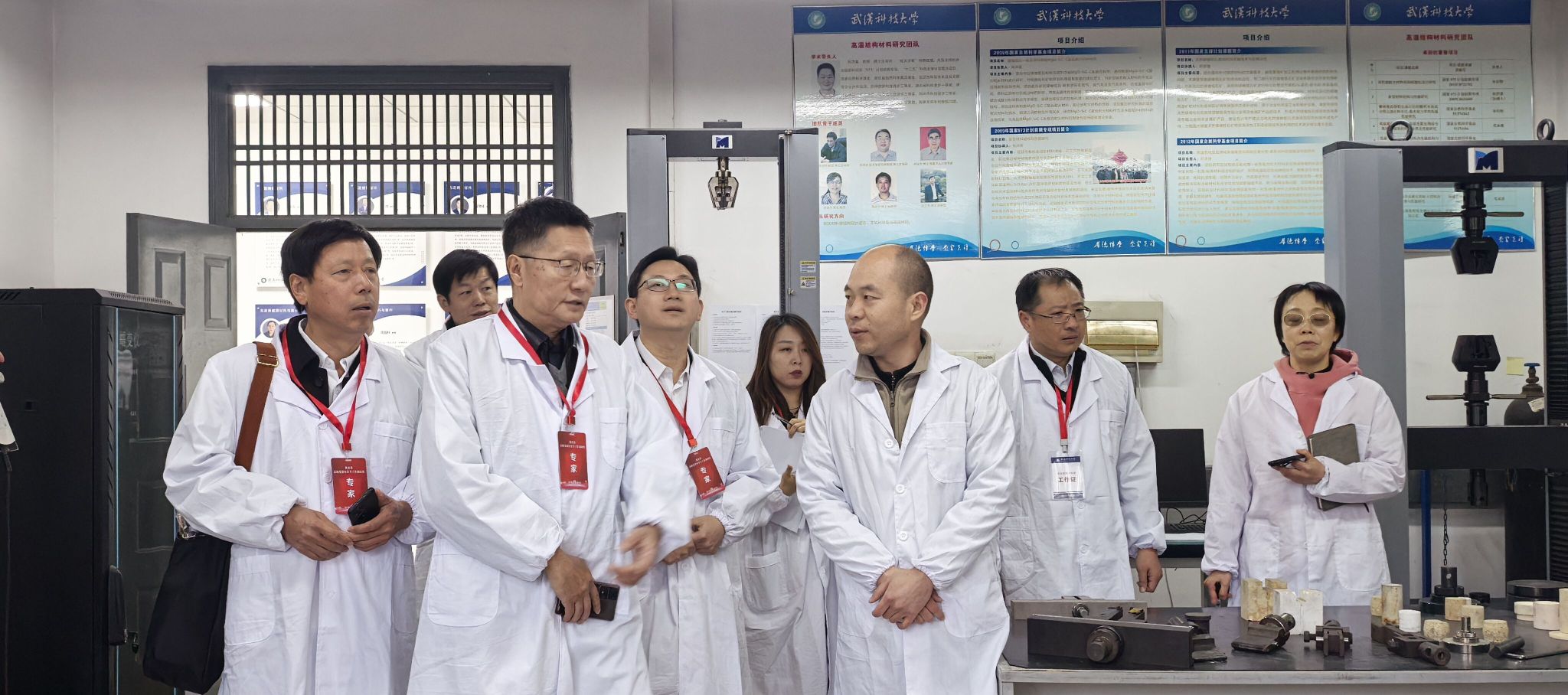 在实地调研环节,专家组选取化学与化工学院、材料学部、资源与环境工程学院的实验室,对危化品管理、危废处置、特种设备使用、气体气瓶使用、应急设施维护等方面进行了检查。