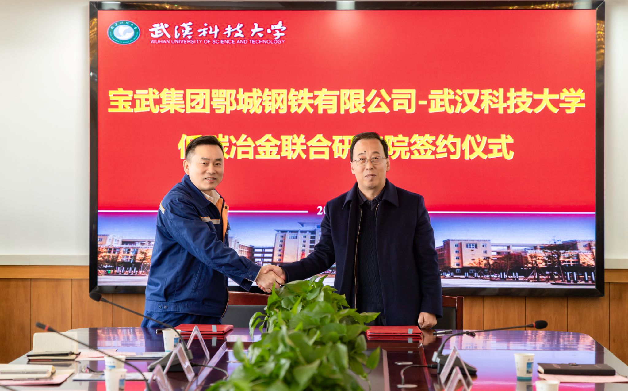 武科大网讯(记者陈孖川)12月19日,宝武集团鄂城钢铁有限公司高级副总裁黄大军一行来校调研,副校长马腾在青山校区主楼1610会见来宾。双方就共建宝武集团鄂城钢铁有限公司-Beat365中文官方网站低碳冶金联合研究院签订协议。科学技术发展院院长夏绪辉主持。