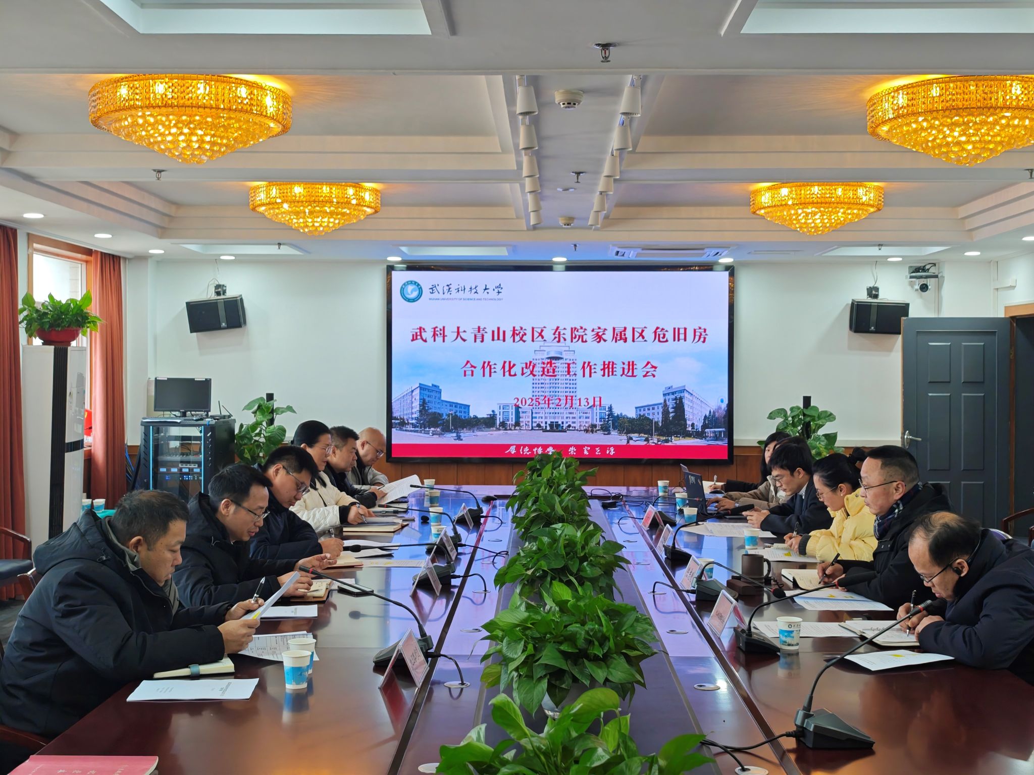 陈志刚代表学校对青山区政府部门一行的到来表示热烈欢迎,并对区委、区政府在危旧房合作化改造工作上给予的重视与支持表达了诚挚感谢。他表示,青山区将武科大青山校区东院家属区项目作为我区唯一一个危旧房合作化改造项目列入2025年武汉市更新计划中,是对学校发展的支持,也是对学校教职工关爱,学校及教职工都十分感谢;去年,学校就教职工住房合作化改造事宜进行了专题调研,主要领导多次听取汇报。2024年10月,学校党委常委会专题审议认为,教职工住房合作化改造是一项重大民生工程,学校要抢抓历史机遇和政策机遇,稳妥有序向前推进。为进一步统筹推进住房合作化改造工作,学校成立了以书记、校长为组长的工作领导小组,全面配合政府推动学校教职工住房改造工作。陈志刚表示,在2025年开局之时,青山校区住房合作化项目纳入全市城市更新计划,区住更局第一时间主持并召开调度会,负责统筹项目合作化改造实施,区资建局、街道、安居集团明确表示大力支持,学校对项目顺利实施充满信心,学校将细化工作安排,成立工作小组,积极配合做好政策宣讲、群众动员、现状调查、意见收集等工作,做好项目容积率调整、停车配建等规划调整审批工作,确保项目按照调度计划安排稳步实施。