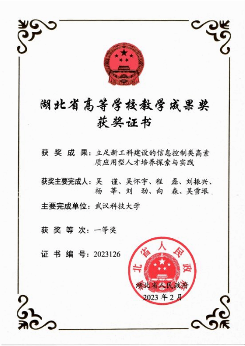 学院不断探索创新人才培养新模式,在教育教学质量工程、教学研究领域取得了可喜的成绩,自动化、电子信息工程、电气工程及其自动化专业获批国家级一流本科专业建设点,通信工程专业获批省级一流本科专业建设点;获批教育部“卓越工程师人才培养计划”、湖北省“战略性新兴(支柱)产业人才培养计划”、湖北省“荆楚卓越人才协同育人计划项目”、湖北省第四批“试点学院改革项目”、教育部“中外合作办学项目”,构建了多样化人才培养模式。学院现有1门国家级一流本科课程,2门国家精品课程和精品资源共享课,1个国家级“新工科”项目,1部“十二五”普通高等教育本科国家级规划教材,4门省级一流本科课程,4门湖北省精品课程,2个教育部地方所属高校本科教学工程大学生校外实践教育基地建设项目,1项湖北省卓越工程师校企共建“1+1”实践实训基地;获得国家级教学成果奖一等奖1项、二等奖2项,省级教学成果奖一等奖5项、二等奖2项、三等奖1项。学院组建了Beat365中文官方网站本科生“崇实”战队,已形成了多年级、跨校区的人才推进管理模式,成功打造双校区联动创新机制,团队获评2021、2023年Beat365中文官方网站“榜样力量•十大魅力学子”。近五年,学院学生有300多人次获得省级以上学科竞赛奖励,其中包括挑战杯及“互联网+”奖项8项,智能汽车大赛奖项49项,电子设计大赛22项,数学建模大赛56项,发表论文11篇,参与项目并发表专利17项。