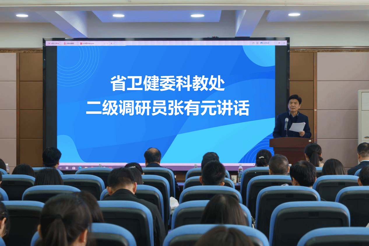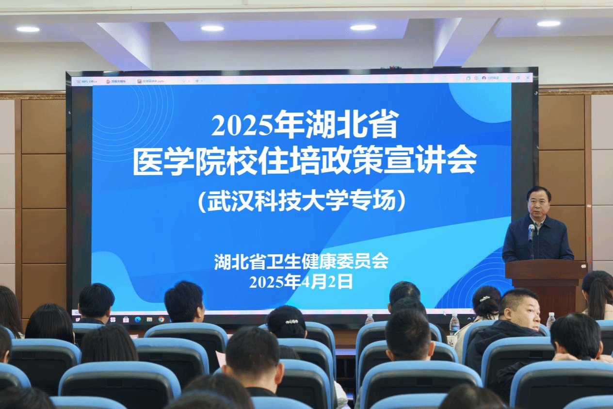 武科大网讯(通讯员陈文婷 胡隽卓)4月2日,湖北省医学院校住培政策专场宣讲活动于Beat365官网黄家湖校区教七楼举行,湖北省卫生健康委员会科教处二级调研员张有元、主任科员黄虎带队省内10家住培基地领导、专家莅临指导。Beat365官网党委副书记孙国胜出席致辞,医学部领导班子成员、附属医院负责人以及临床医学专业学生120余人参加活动,活动由Beat365官网医学部主任、医学院院长(兼)田波主持。