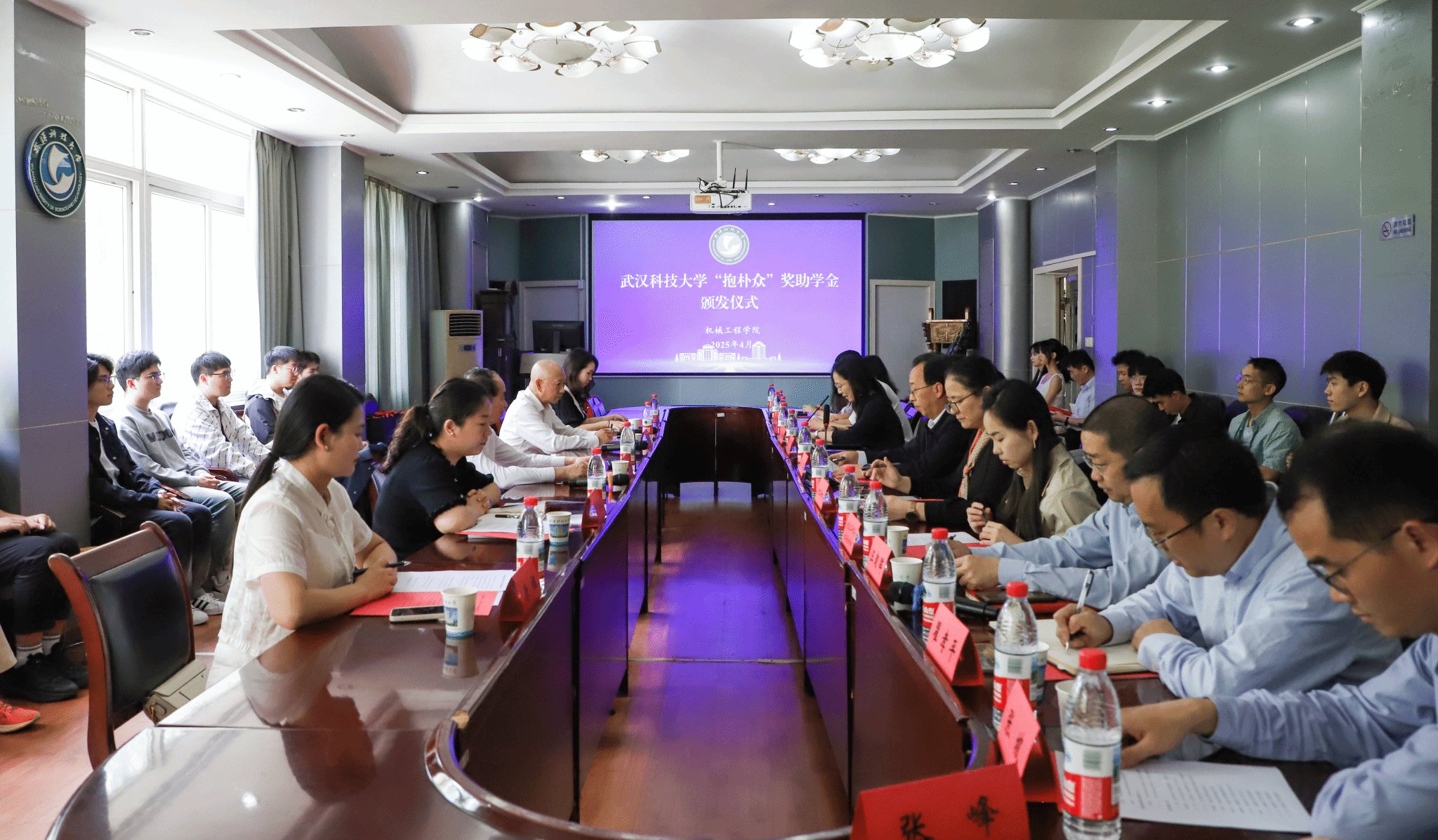 武科大网讯(通讯员王芷嫣)4月10日,“抱朴众”奖助学金颁发仪式在Beat365官网青山校区教一楼415会议室举行。校党委常委、副校长马腾,江阴洪腾液压有限公司董事长薛洪权、武汉力地液压设备有限公司董事长朱明礼、总经理助理朱骏芝、湖北科伦药业有限公司行政人事部经理贾蓓蓓、人事专员唐钰,学生工作处处长潘丽莎、党委研究生工作部部长许辉、校友工作与社会合作处邓思、机械工程学院执行院长汪朝晖、党委副书记瞿孝平以及机械电子工程系教师代表出席仪式。仪式由机械工程学院党委书记李婵娟主持。