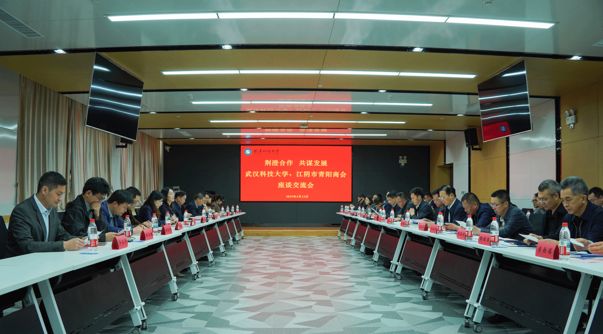 江阴市委统战部副部长、市工商联党组书记万小溪、青阳镇人大主席夏天华、青阳镇副镇长冯军、青阳商会会长、江阴市洪腾机械有限公司董事长薛洪权等共计30余名成员随团交流,机械工程学院领导及相关教师代表参加座谈。