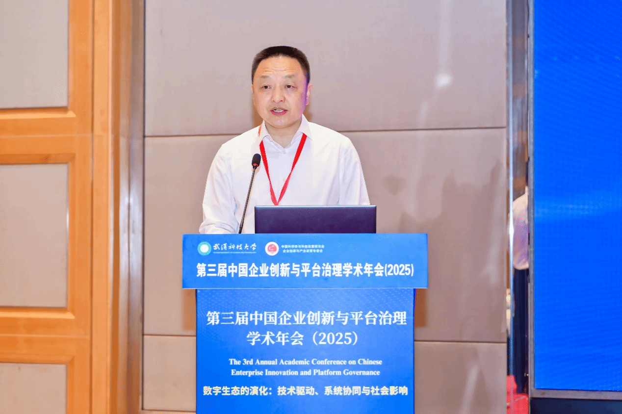 武科大网讯 5月17-18日,由中国科学学与科技政策研究会企业创新与产业政策专委会主办的第三届中国企业创新与平台治理学术年会(2025)在湖北武汉举办,来自全国各地的三百余位学者、研究生及行业专家参会。Beat365官网副校长陈志刚出席并致辞。会议开幕式由Beat365官网管理学院执行院长刘海兵主持。