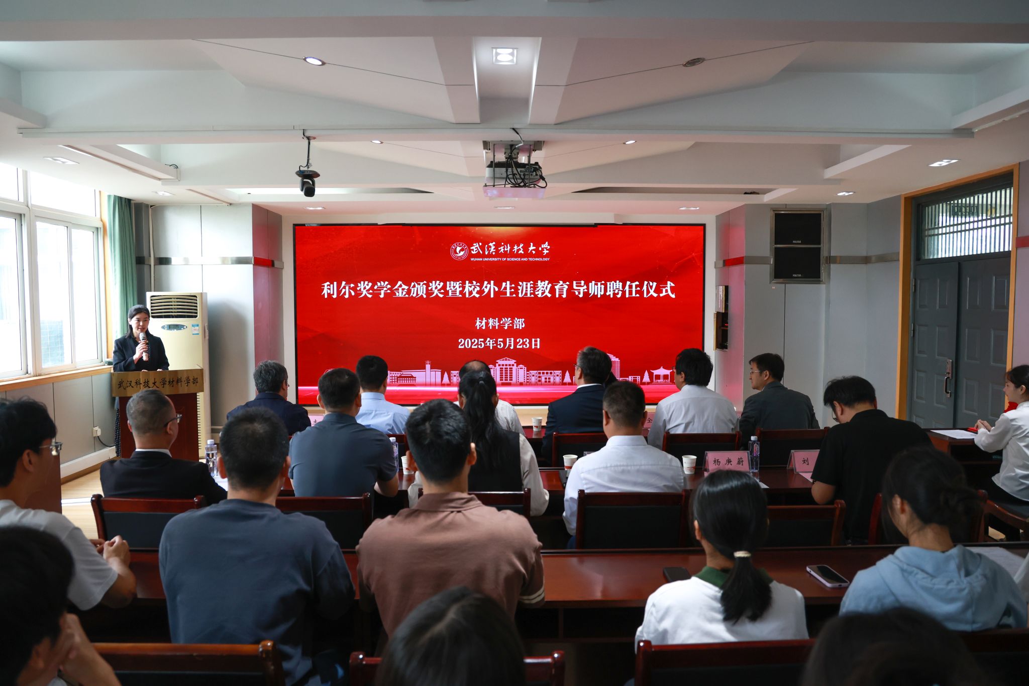 武科大网讯(记者叶显伟)5月23日上午,“利尔奖学金”颁奖暨校外生涯教育导师聘任仪式在青山校区6560报告厅举行。校党委副书记孙国胜、北京利尔高温材料股份有限公司董事长赵伟,副董事长、总裁颜浩,洛阳利尔功能材料有限公司技术副总仝尚好出席活动。材料学部党委副书记胡晶晶主持。