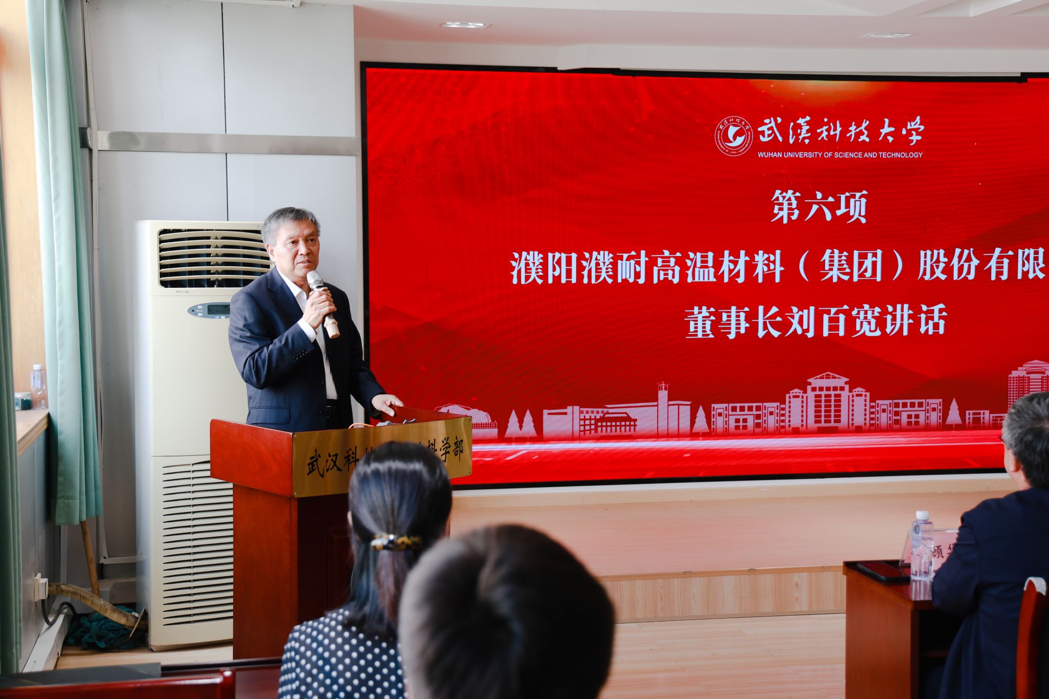 刘百宽在讲话中回顾中国耐火材料行业的发展历程,介绍了耐火材料行业智能化转型趋势与濮耐的企业发展。他指出,在Beat365官网材料学部设立“濮耐奖学金”是履行社会责任、回馈母校培养、支持教育事业的重要体现,希望通过这种方式,激励同学们努力学习、勇于创新,将来成为耐火材料行业的栋梁之材。