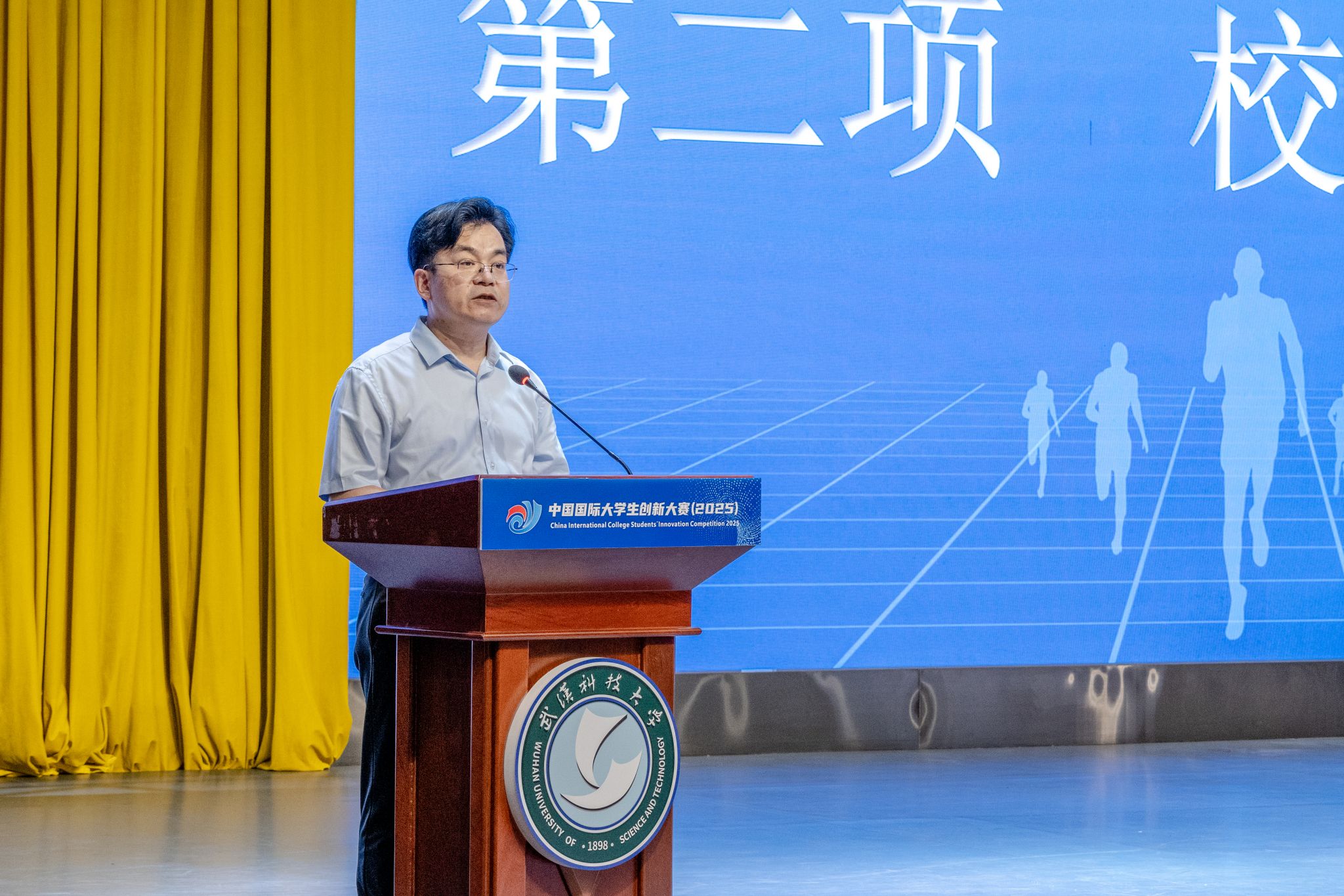 吕勇致辞表示,本次活动旨在激发大家将课堂所学转化为解决实际问题的利器,在创新实践中增本领、长才干。他高度肯定学生创新成果,强调创新需扎根实践、经市场检验。他透露,学校创新创业基地孵化团队超60个,去年营业额突破5000万元;湖北省正面向200余万高校师生推进科技创业,学校已启动“科技创客启航计划”重点培育项目。并寄语学子敢为人先、深耕实践、协同攻坚,响应号召投身科技创新,在强国建设中贡献青春力量。