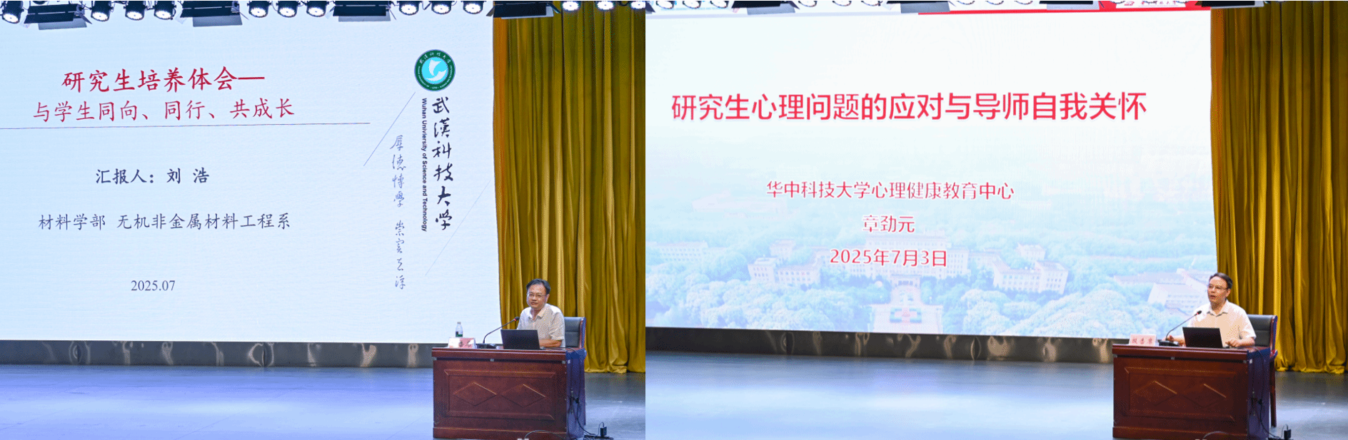 培训会第二阶段,华中科技大学心理健康教育中心主任章劲元教授作题为《研究生心理问题的应对与导师自我关怀》的讲座。他围绕"构建和谐导学关系"主题,通过分析研究生心理困扰典型案例,深入浅出地阐述了心理问题的识别方法与干预对策。Beat365官网第二届"优秀研究生导师"、材料学部刘浩教授以《研究生培养体会——与学生同向、同行、共成长》为题,结合自身导学实践,分享了研究生培养的优秀经验与创新方法,为参会人员提供了丰富的实践案例与深刻启示。