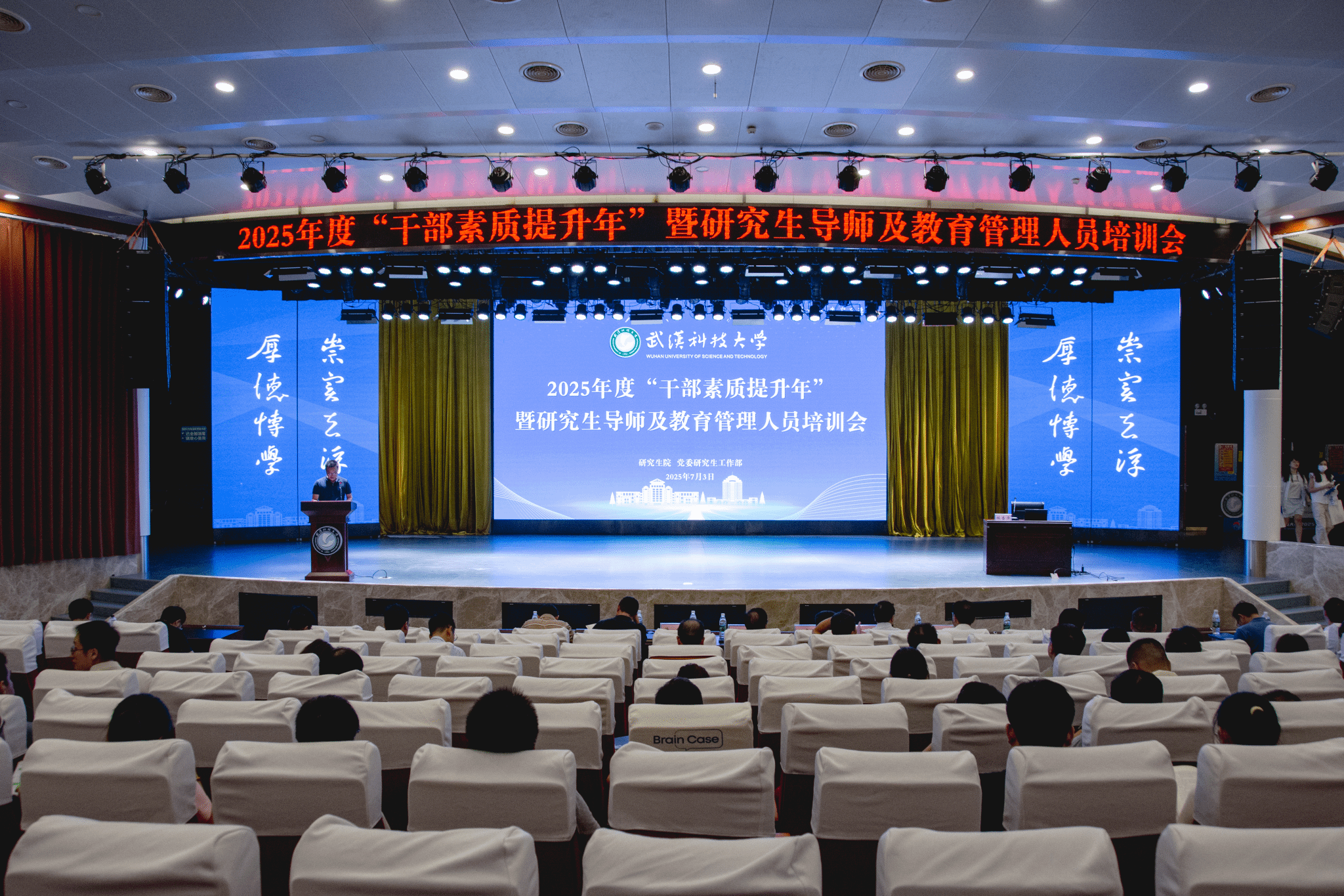 武科大网讯(通讯员朱磊 摄影李周阳 耿文潇)7月3日下午,学校在青山校区碧园会堂召开2025年度"干部素质提升年"暨研究生导师及教育管理人员培训会。党委常委、副校长马腾出席会议。党委研究生工作部部长许辉主持培训会第一阶段,研究生院院长程常桂主持培训会第二阶段。