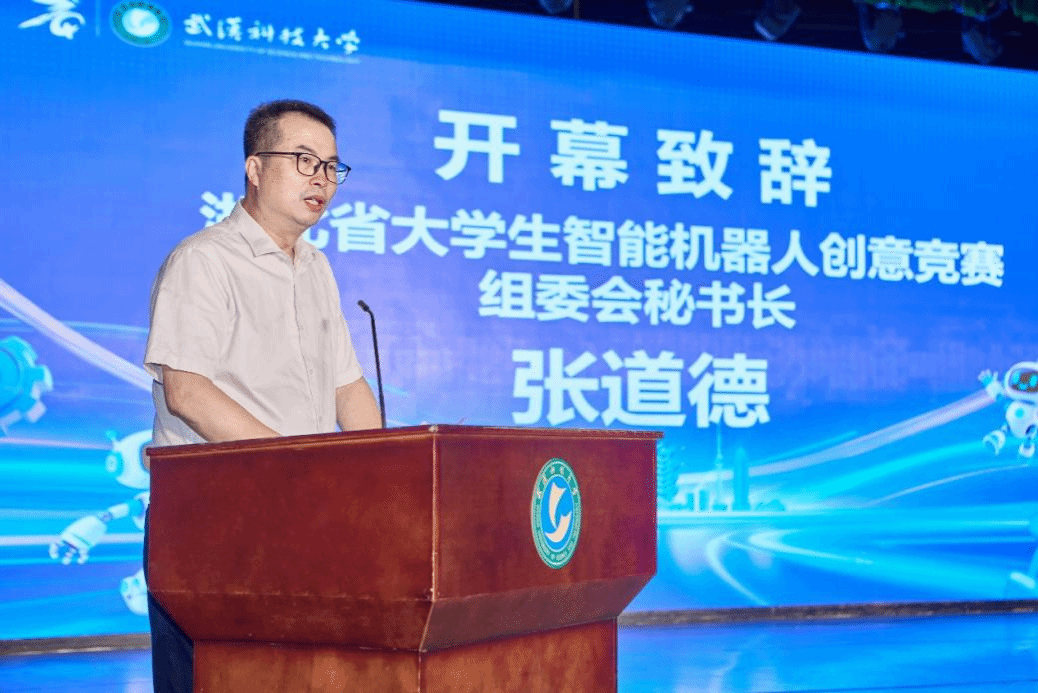 吕勇代表学校对出席比赛的各位领导、专家和参赛师生表示了最诚挚的欢迎,表示将以此次大赛为契机,全面提高人才自主培养质量,努力培养更多高素质创新型人才,为我国机器人技术创新发展贡献智慧和力量。