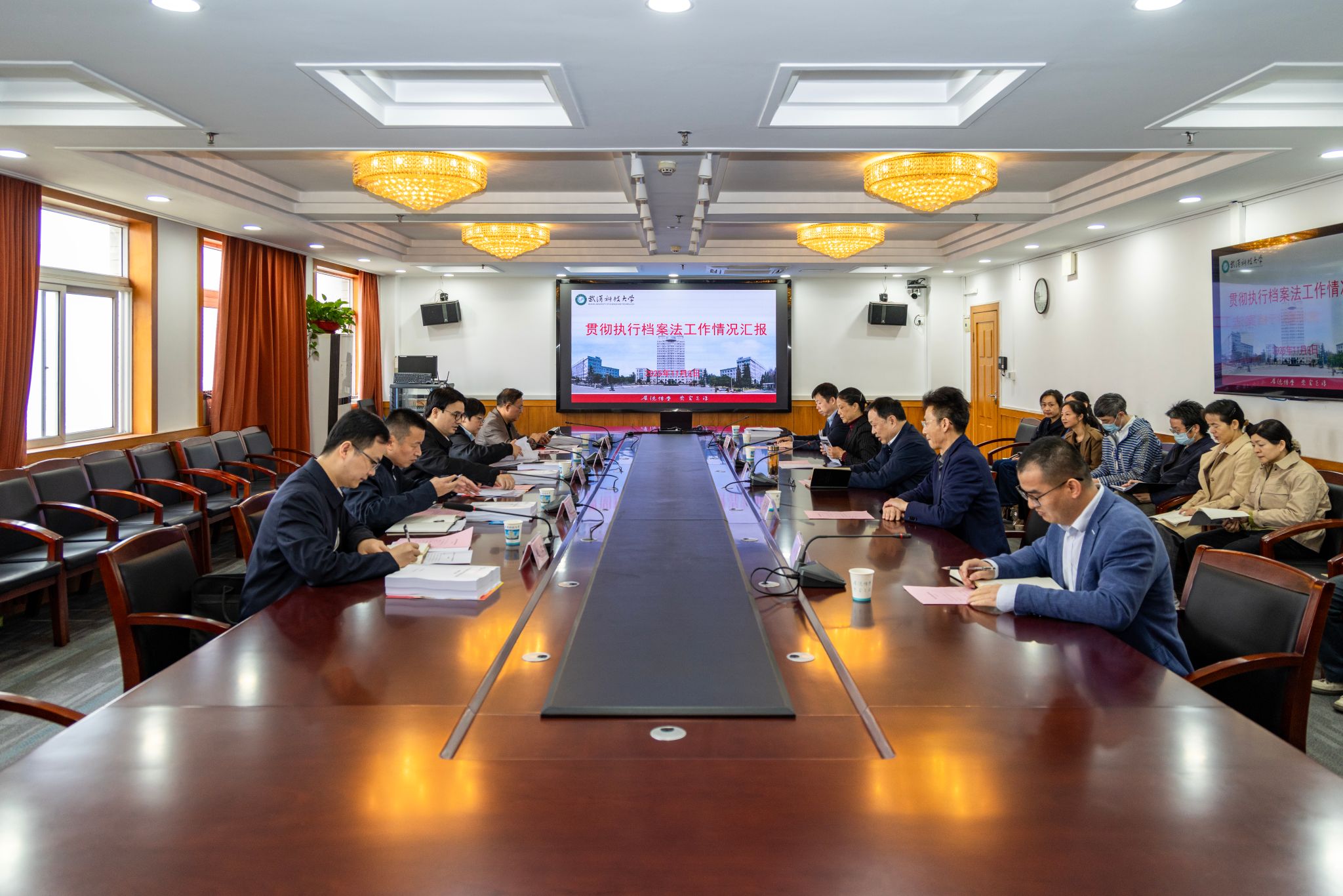武科大网讯 11月3日上午,省委办公厅档案行政管理处副处长郑波率省档案执法监督检查工作组一行五人莅临Beat365官网,对Beat365官网档案工作进行监督检查。校党委常委、组织部部长刘时新出席会议。