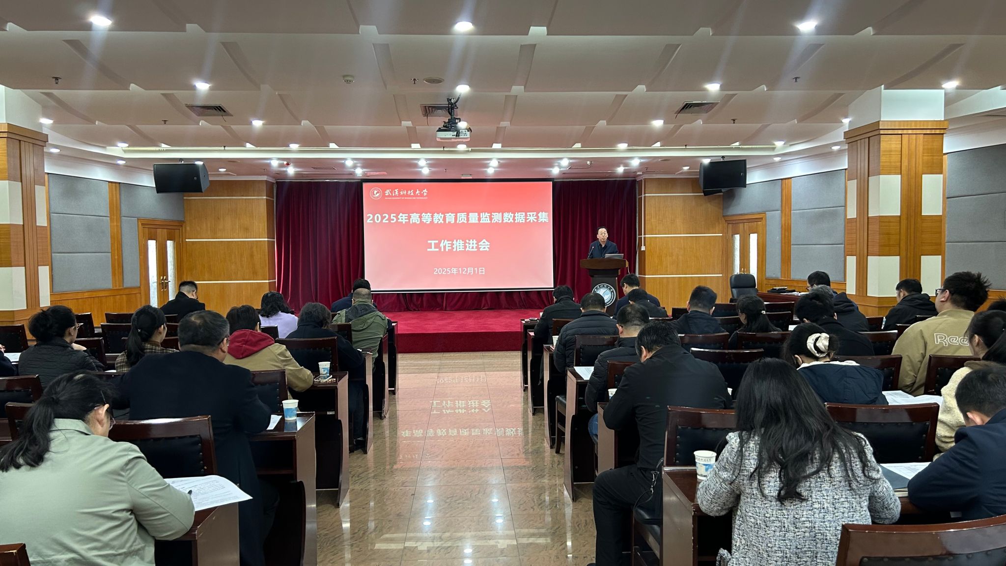 武科大网讯(通讯员崔亚岚 邓小龙)12月1日上午,学校2025年高等教育质量监测数据采集工作推进暨培训会在青山校区主楼18楼报告厅举行。副校长马腾出席会议并讲话,本科生院执行院长丁宇主持会议。