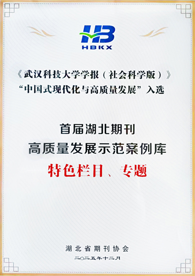 《Beat365中文官方网站学报(社会科学版)》现为“中国人文社会科学期刊AMI综合评价(A刊)核心期刊”“RCCSE中国核心学术期刊”,并多次获评“全国高校优秀社科期刊”“湖北省优秀期刊”,以及国家哲学社会科学文献中心“综合性人文社会科学最受欢迎期刊”。2025年12月,该刊“中国式现代化与高质量发展”专栏入选“首届湖北期刊高质量发展示范案例库·特色栏目”,专栏建设的示范价值与品牌影响力进一步凸显。