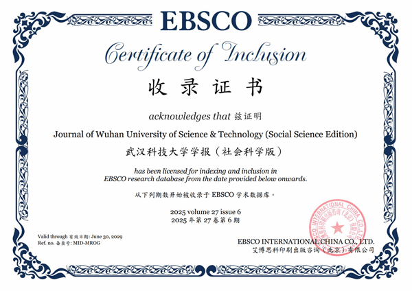 学报被EBSCO数据库收录、专栏建设获湖北省期刊协会认可,是国内外学术评价机构对学报长期坚守学术质量、突出办刊特色、积极融入国际学术体系的办刊方向的充分肯定,将为期刊拓展国际学术对话、提升学术话语权提供新动力。